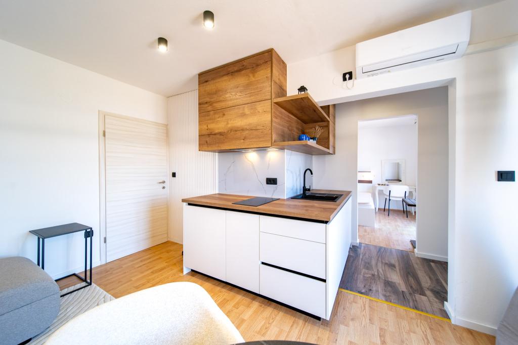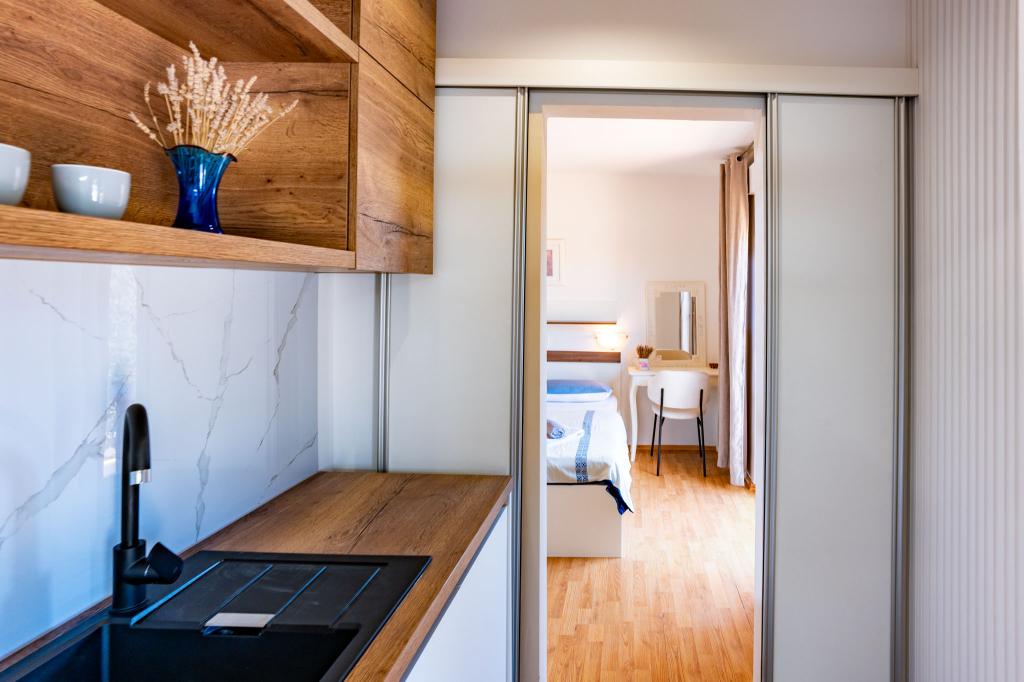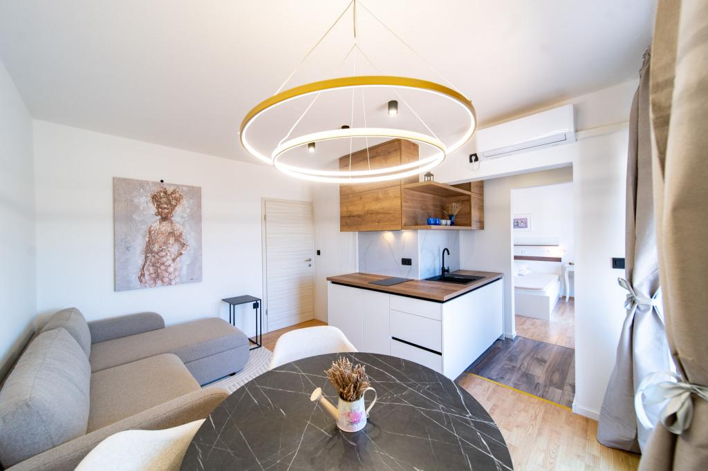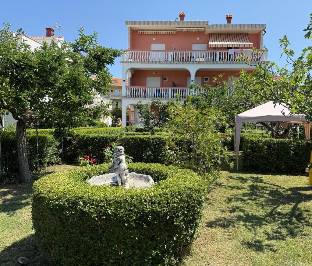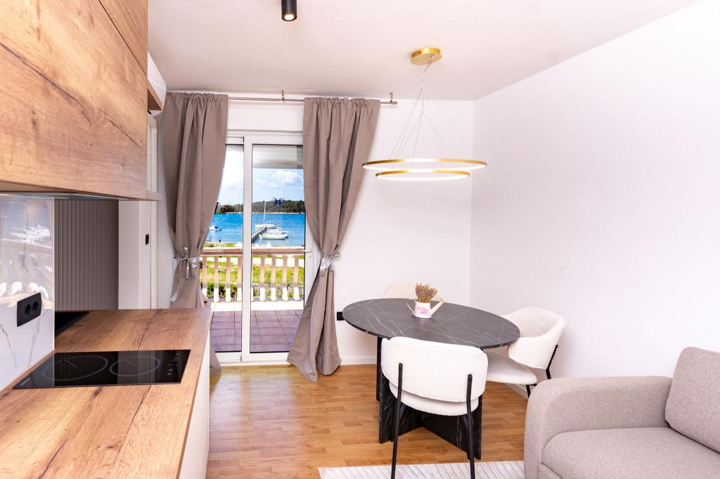 Die Anlage liegt in einem ruhigen Teil der Insel Rab, der Stadt Palit. Da wir uns in der ersten Reihe zum Meer befinden, bieten alle Einheiten, die luxuriös und komplett ausgestattet sind, einen wunderschönen Blick auf das Meer und die romantische Bucht von Frkanj, wo Sie zauberhafte Sonnenaufgänge und Sonnenuntergänge genießen können. Das Haus liegt nur 50 Meter vom Strand und 150 Meter vom Zentrum von Rab entfernt, das Sie über einen angenehmen Spaziergang entlang der Promenade am Meer erreichen können. Restaurants befinden sich ebenfalls nur wenige Gehminuten vom Gebäude entfernt. Das Gebäude ist außerdem mit einem wunderschönen Garten mit Garten geschmückt, in dem Sie die mediterranen Düfte genießen können, während Sie am Meer vorbeigehen.