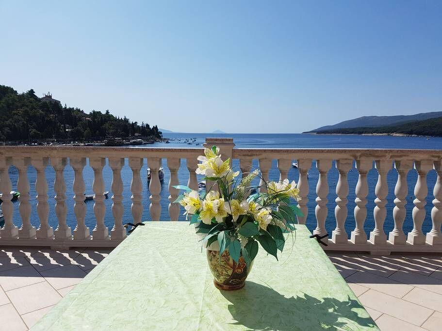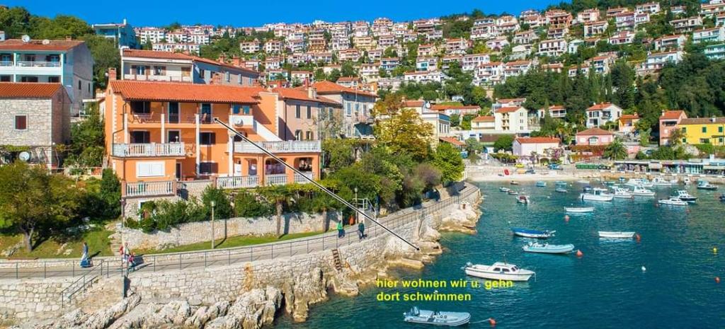 Unser Haus liegt im Zentrum von Rabac direkt am Meer mit fantastischem Blick auf die gesamte Bucht, die Insel Cres und Unije. 100 m links und 200 m rechts vom Haus befinden sich die Strände, hinter dem Haus befinden sich Restaurants. Geschäft, Post, Apotheke und Arzt sind 200 m vom Haus entfernt. Jede Wohnung hat Meerblick und eine eigene Terrasse (Wohnung 1 und 2). Die Wohnungen 3 und 4 haben einen gemeinsamen Balkon.