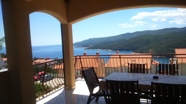 Das Gastgeberpaar war sehr nett und hilfsbereit und begrüßte uns bei unserer Ankunft mit frischem Kuchen und kalten Getränken. Die Unterkunft ist perfekt, die riesige Terrasse bietet einen wunderschönen Blick auf das Meer. Die Küche ist gut ausgestattet, die separaten Zimmer bieten jedem Privatsphäre. Das Preis-Leistungs-Verhältnis ist sehr gut, der einzige Nachteil ist der steile, lange Weg den Berg hinauf. Wir genossen das Schwimmen in den weißen Felsbuchten mit dem klaren, blauen Wasser. Die nahegelegenen Strände sind zur Hälfte mit dem Auto und zur Hälfte zu Fuß in etwa 20-25 Minuten erreichbar. Größere Supermärkte gibt es im Nachbarort, kleinere Geschäfte gibt es auch in Rabac. In der Küstenfußgängerzone gibt es sehr gute Restaurants, Eisdielen und kleine Geschäfte. Wir empfehlen es aktiven Familien und Freundesgruppen. Wir würden gerne wiederkommen.