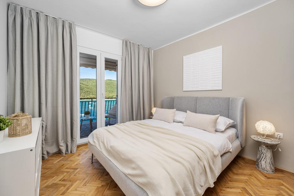 Sehr schöne, saubere Unterkunft mit großer Terrasse und spektakulärem Meerblick. Auf der Terrasse schöne Blumen. Die Wohnung ist hervorragend ausgestattet. Föhn, Klimaanlage, Wasserkocher, Backofen, Kühl- / Gefrierschrank, Toaster, TV, viel Geschirr, kostenlose Parkplätze. Es ist von unschätzbarem Wert, dass die Heimat sehr nette und gastfreundliche Menschen sind. Die Dame des Hauses ist eine wunderbare Köchin, die alle Leckereien zum Frühstück als Überraschung auf der Terrasse zubereitet. Sie waren immer bereit zu helfen und zu reden. Wir hatten das Gefühl, eine Familie zu besuchen. Unter der Wohnung befinden sich Cafés und Einkaufszentren sowie eine Bäckerei, so dass ein frisches Frühstück immer zur Hand ist. Ein kurzer Spaziergang, Apotheke und Supermarkt. Wir planen, nächstes Jahr wieder in diese Wohnung zu kommen. Sehr zu empfehlen, es gibt nichts zu beanstanden. Romana, Michal und Kubik