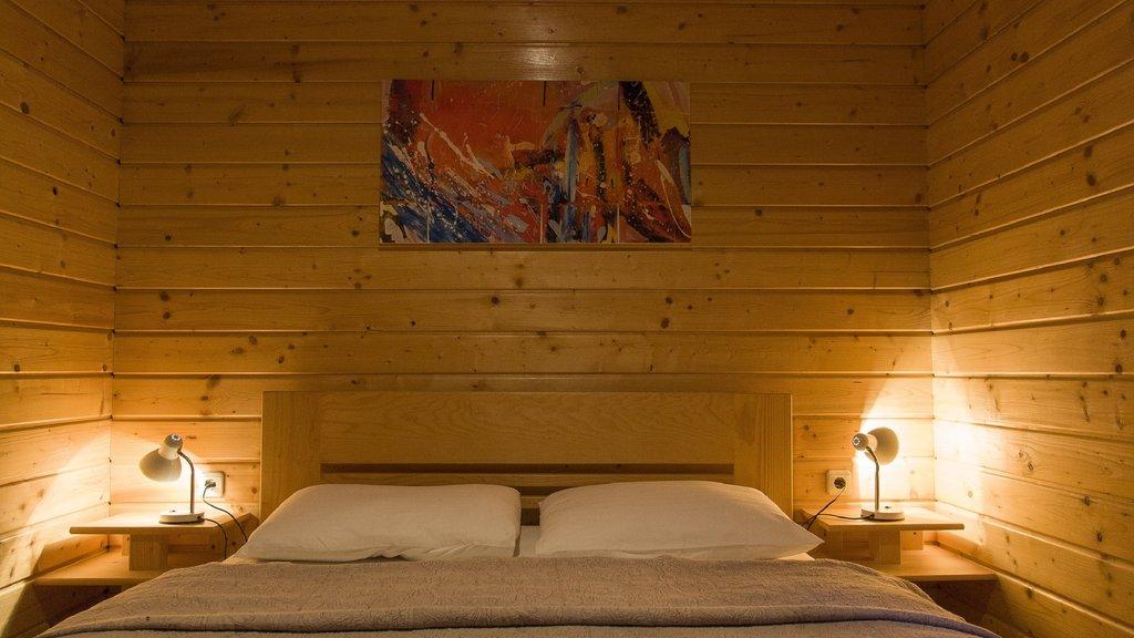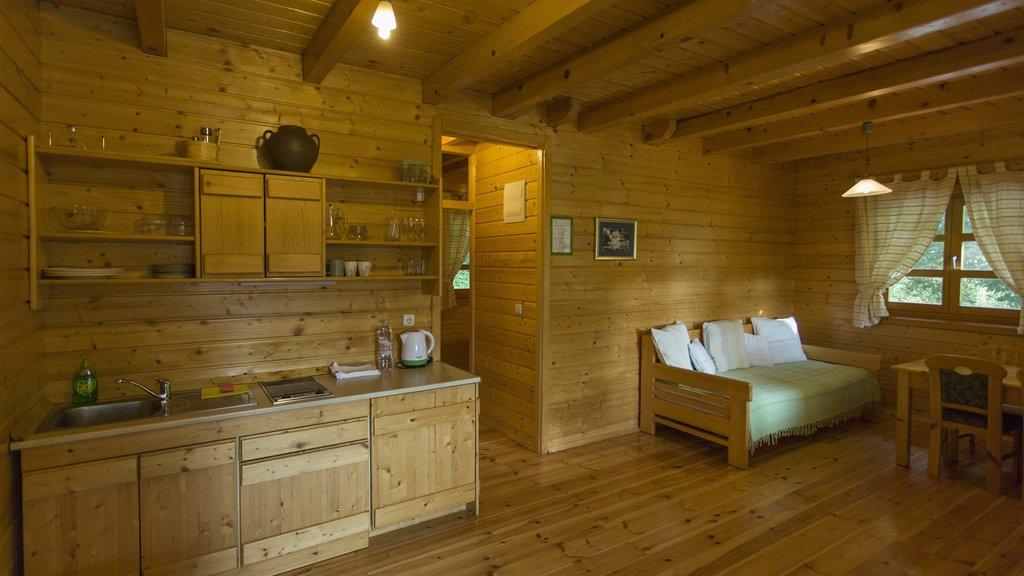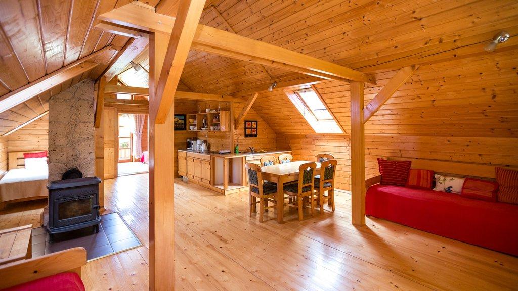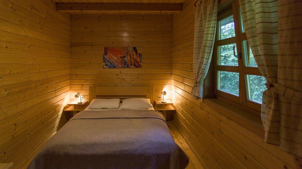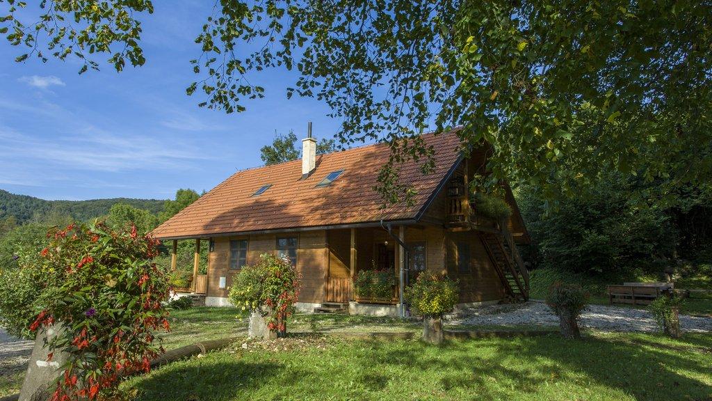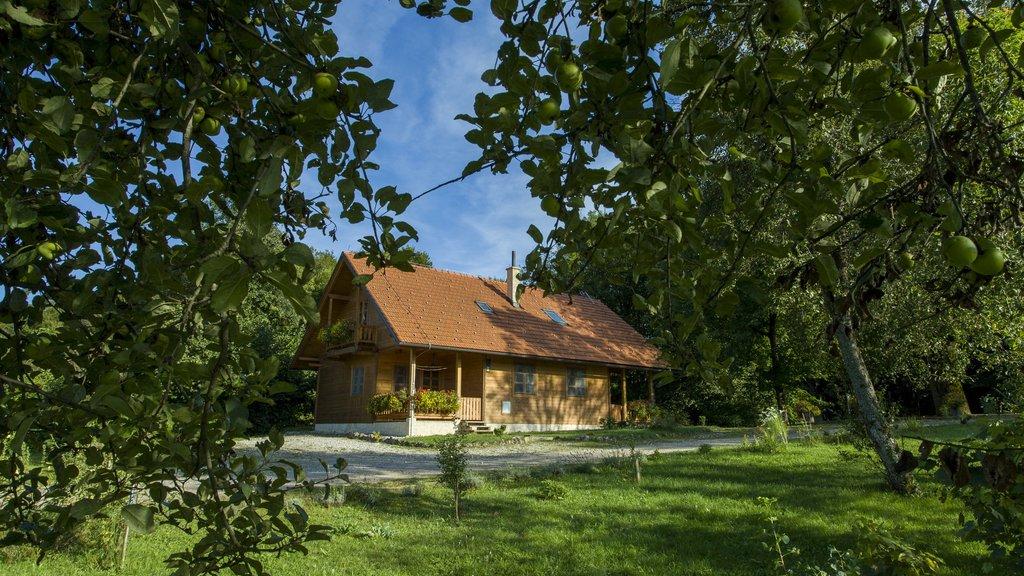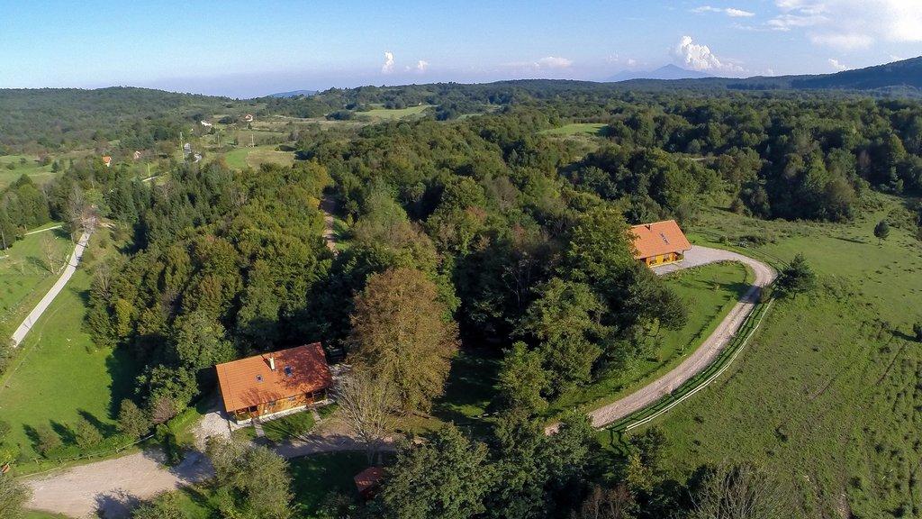 Jela ist eines von zwei Holzhäusern auf dem Anwesen Jelov Klanac am äußersten Rand des Nationalparks Plitvicer Seen. Wie der endlose Wald und das Grün, in dem es liegt, denkt Jela grün. Nachts, wenn das Licht ausgeschaltet ist, können Sie in aller Ruhe den Himmel und die Sterne beobachten. Im Sommer erhellen Glühwürmchen das Anwesen und der Duft von Heilkräutern weht durch die Gegend, während im Winter das Knistern des Holzes im Kamin und der Ausblick auf die umliegenden schneebedeckten Hügel ein authentisches Erlebnis bieten. Jela bietet Unterkunft in drei Apartments, die mit handgefertigten Holzmöbeln ausgestattet sind.