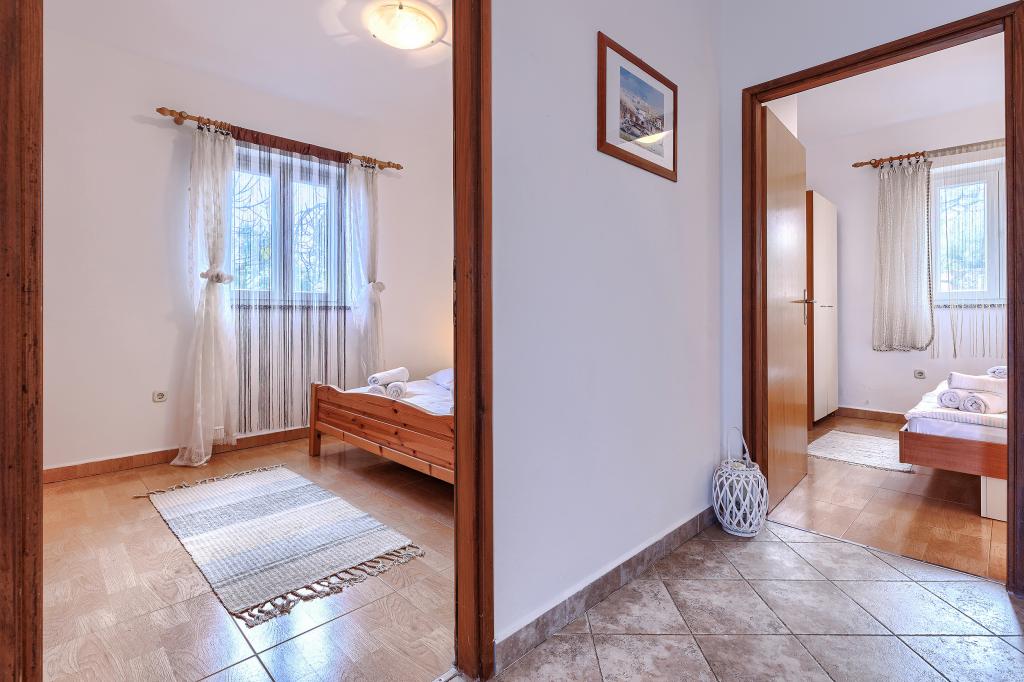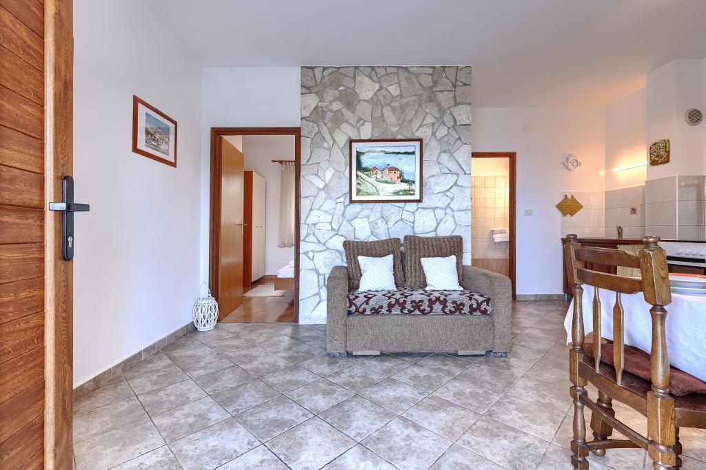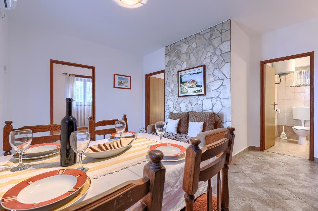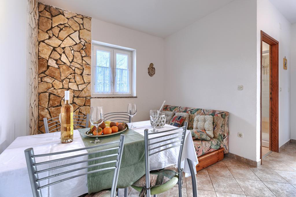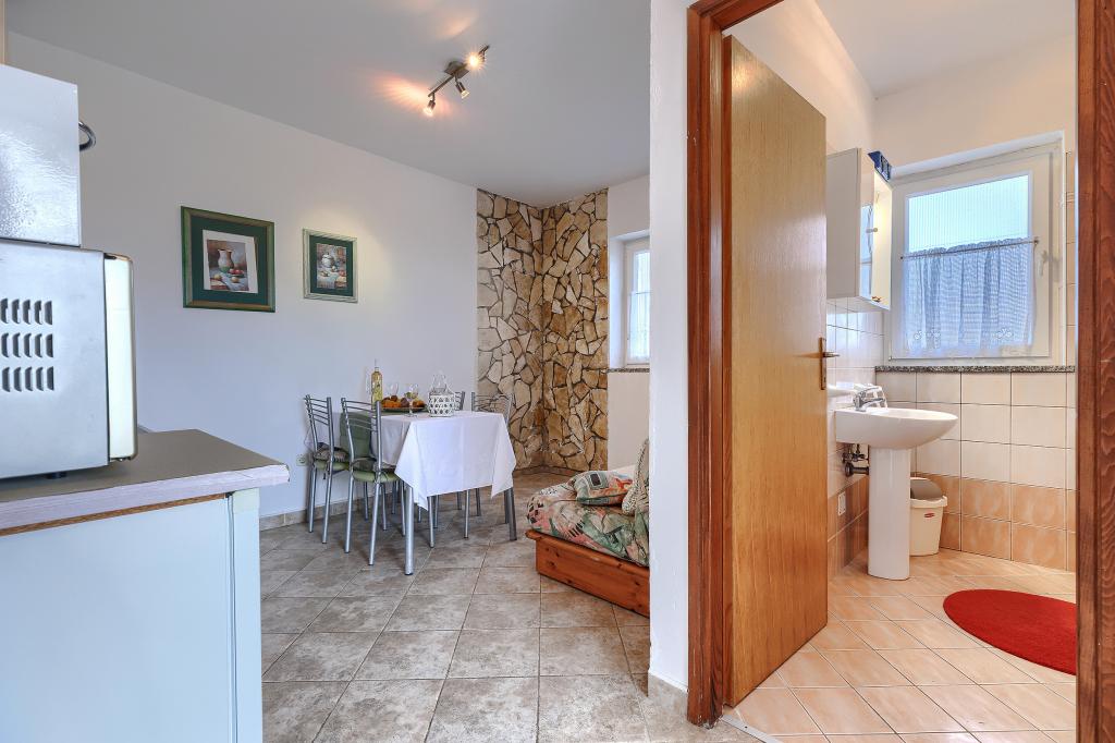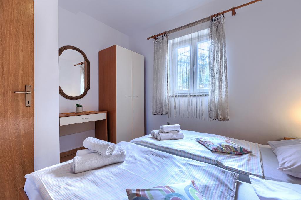 Haus mit mehreren Apartments in der Siedlung Drenje. Nur 5 Autominuten vom Strand und 15 Minuten von Labin entfernt. Die Apartments befinden sich im Erdgeschoss und bieten absolute Privatsphäre sowie die Möglichkeit zur Entspannung und Erholung. Ein Apartment ist 42 m² groß und verfügt über ein Schlafzimmer mit Doppelbett und der Möglichkeit, ein Zustellbett zu nutzen. Es bietet außerdem ein Wohnzimmer mit Essbereich, eine voll ausgestattete Küche, eine Terrasse mit Meerblick und ein Badezimmer. Das zweite Apartment ist 56 m² groß und bietet zwei Schlafzimmer mit je einem Doppelbett, ein Wohnzimmer mit Essbereich, eine voll ausgestattete Küche, eine Terrasse mit Meerblick und ein Badezimmer. Das nächste Restaurant und der nächste Supermarkt sind jeweils 5 Autominuten entfernt. Die Apartments liegen in ruhiger Lage inmitten einer schönen Natur – alles, was Sie für einen perfekten Urlaub brauchen!