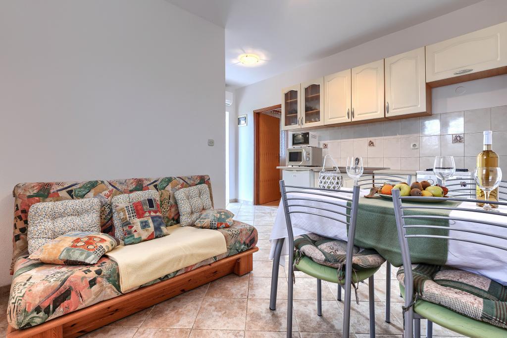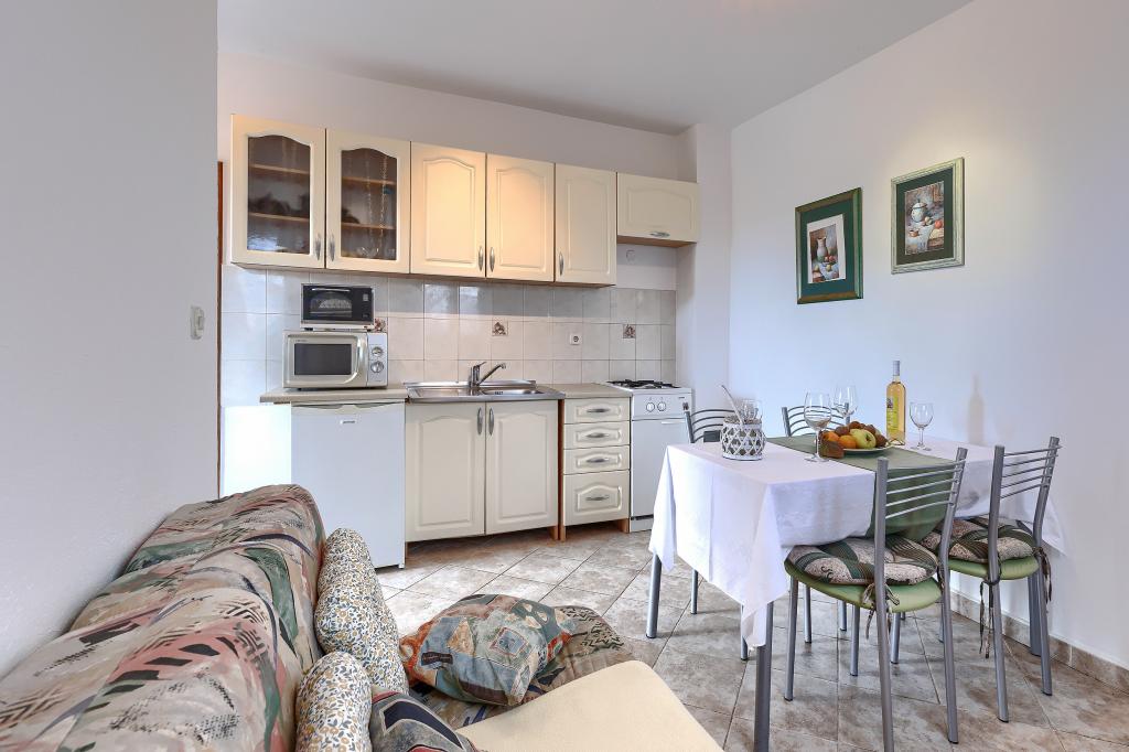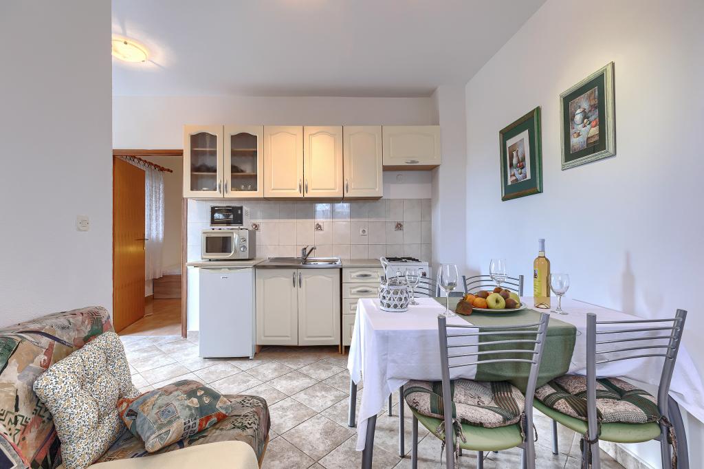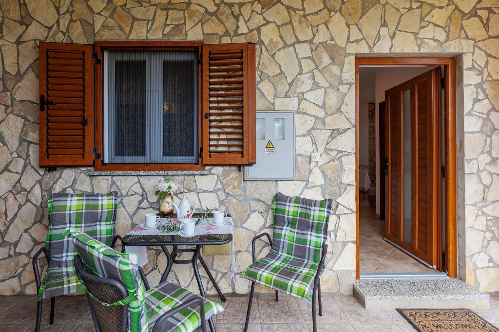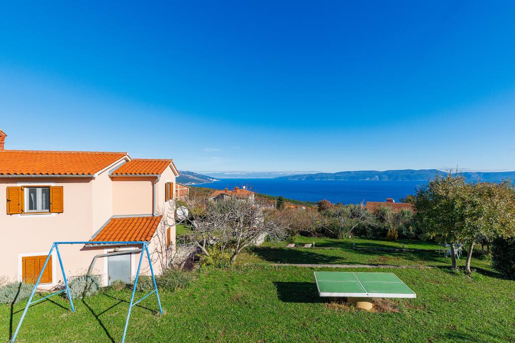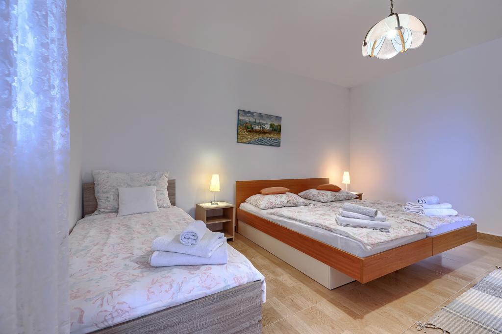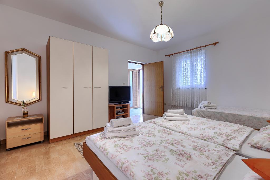 Haus mit mehreren Apartments in der Siedlung Drenje. Nur 5 Autominuten vom Strand und 15 Minuten von Labin entfernt. Die Apartments befinden sich im Erdgeschoss und bieten absolute Privatsphäre sowie die Möglichkeit zur Entspannung und Erholung. Ein Apartment ist 42 m² groß und verfügt über ein Schlafzimmer mit Doppelbett und der Möglichkeit, ein Zustellbett zu nutzen. Es bietet außerdem ein Wohnzimmer mit Essbereich, eine voll ausgestattete Küche, eine Terrasse mit Meerblick und ein Badezimmer. Das zweite Apartment ist 56 m² groß und bietet zwei Schlafzimmer mit je einem Doppelbett, ein Wohnzimmer mit Essbereich, eine voll ausgestattete Küche, eine Terrasse mit Meerblick und ein Badezimmer. Das nächste Restaurant und der nächste Supermarkt sind jeweils 5 Autominuten entfernt. Die Apartments liegen in ruhiger Lage inmitten einer schönen Natur – alles, was Sie für einen perfekten Urlaub brauchen!