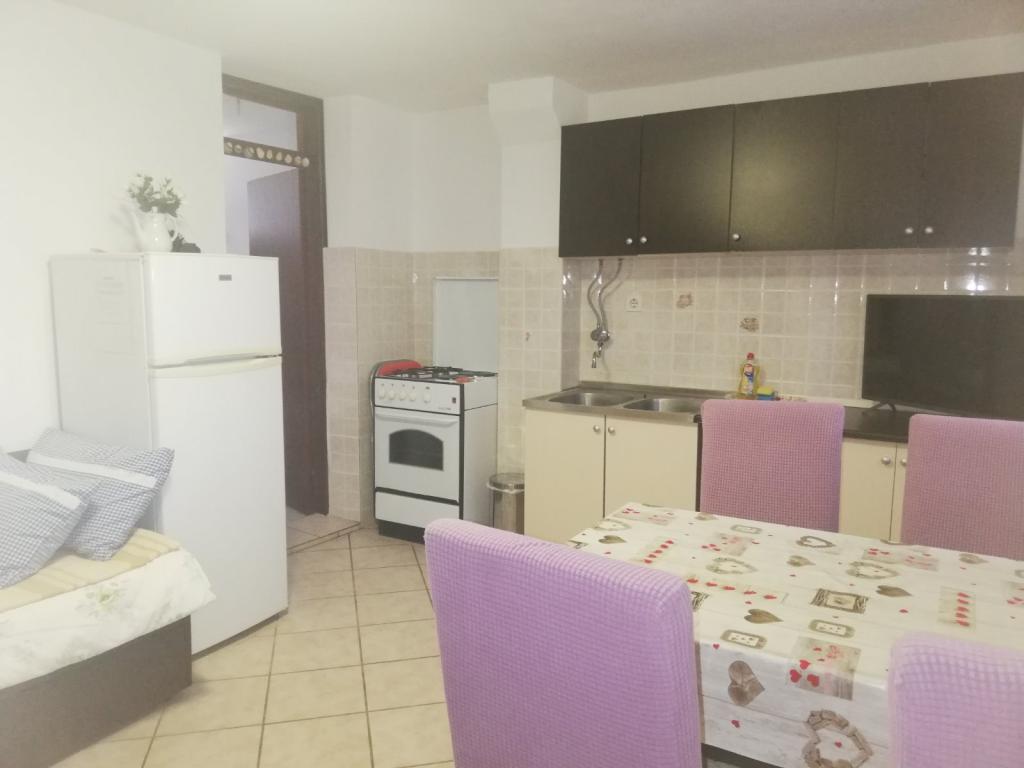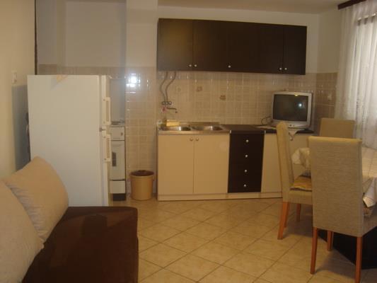 Die Wohnungen sind an einem ruhigen Ort, komplett eingerichtet. Die Küche verfügt über alle notwendigen Utensilien zum Aufbewahren und Servieren von Speisen und Getränken. Sie haben auch einen Kühlschrank mit Gefrierfach, Gas-/Elektroherd mit Backofen. Die Apartments sind klimatisiert. WiFi Das Badezimmer hat eine Dusche, WC, Waschbecken mit Spiegel. Neben den Wohnungen befinden sich überdachte Terrassen mit weitem Meerblick. Eingebauter Grill. Neben den Wohnungen ist ein Parkplatz in Ihrem eigenen Hof vorgesehen. Der Strand ist 70 Meter entfernt. Der Strand ist ideal für Kinder. Zu den weiteren Einrichtungen am Strand gehören eine Bowlingbahn und ein Wasservolleyballnetz.