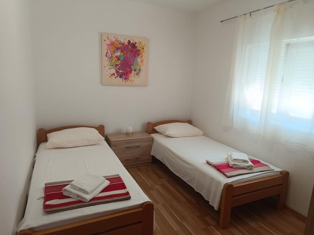 Voll ausgestattete Apartments in Ražanac, 30 m vom Meer und Strand entfernt. Die Apartments Ivan liegen 5 Gehminuten vom Zentrum von Ražanac und anderen notwendigen Einrichtungen wie Geschäften, Restaurants, Märkten, Metzgereien, Postämtern, Kliniken, Apotheken, Bibliotheken und Geldautomaten entfernt. Jedes Apartment besteht aus einer Küche, zwei Schlafzimmern, einem Badezimmer und einer Terrasse und verfügt über Klimaanlage, Sat-TV, WLAN und einen bewachten Parkplatz. Vom Balkon aus bietet sich eine wunderschöne Aussicht auf Velebit und das Meer. Die Apartments Ivan sind Träger des Sicherheitslabels Safe Travels des World Travel and Tourism Council (WTTC) und des nationalen Sicherheitslabels Safe Stay in Croatia. Wir bieten einen Service, bei dem die Protokolle für einen sicheren Aufenthalt in Kroatien angewendet werden. Ražanac ist eine kleine Stadt an der Küste des Velebit-Kanals, in der Nähe der Städte Zadar, Nin und Pag, ideal für einen ruhigen und erholsamen Urlaub mit der Familie. In der Nähe befinden sich die Nationalparks Paklenica, Kornati, Plitvice, Krka und die Naturparks Nördlicher Velebit und Vrana-See. Seien Sie unsere Gäste und verbringen Sie einen angenehmen Urlaub in Ražanac.