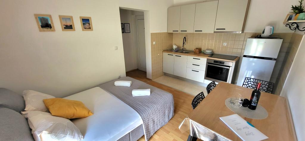 Wohnung neu, sauber und attraktiv. Der Nähe des Strandes mit einem malerischen Blick auf das Meer und den Bergen gelegen. Inhaber Marko und Rafael und seine Eltern sehr freundlich, zuvorkommend, hilfsbereit und diskret. Wohnung zu empfehlen. Grüße: Marcin, Beata und Adrian :-)
