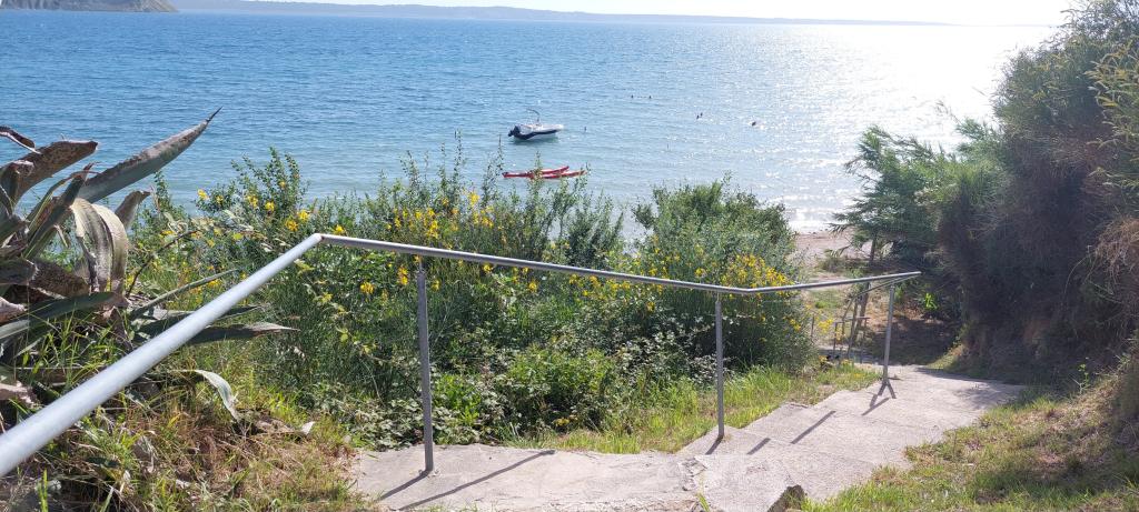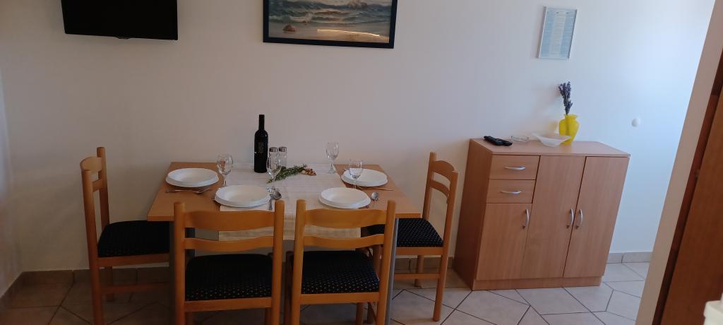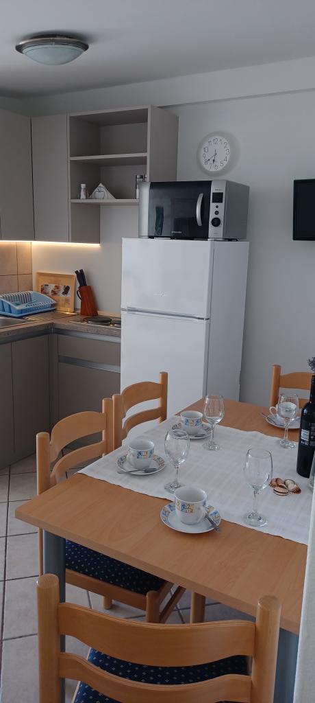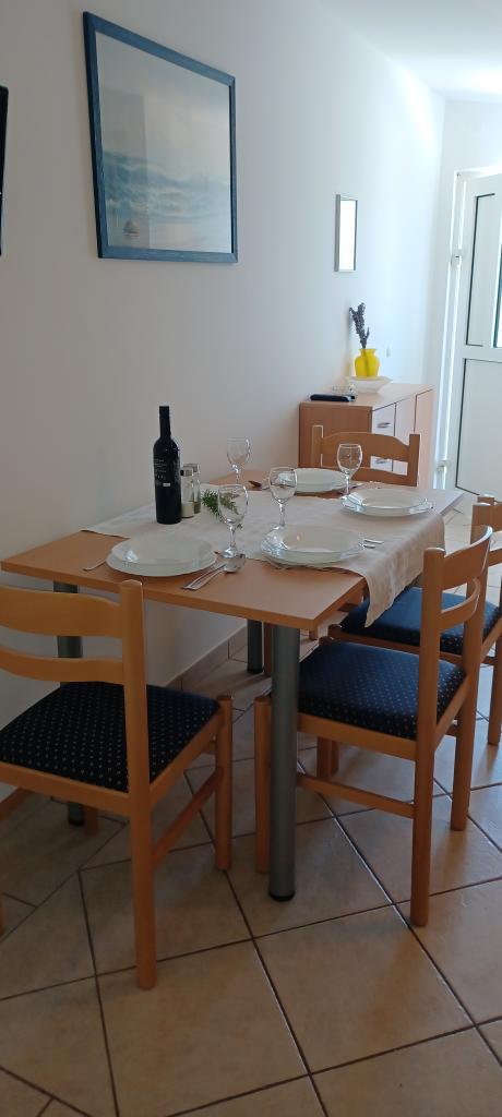 Gut ausgestattete Apartments im ersten Stock des Hauses. Ideal für einen ruhigen Familienurlaub. Der Naturstrand und das Meer sind nur 50 Meter von der Wohnung entfernt. Ruhige Straße ohne Verkehr. Der Parkplatz befindet sich im umzäunten Hof des Hauses. Die Möglichkeit, einen Grill und eine Außendusche zu nutzen.
