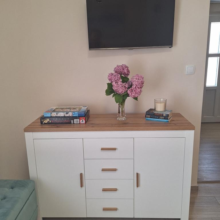 Das komplett eingerichtete Haus von 45 m2 befindet sich in Ražanac, einer kleinen Stadt mit Blick auf Velebit. Das Haus liegt nur wenige Gehminuten vom Zentrum von Ražanac, Restaurants, Apotheke, Geschäften, Post, Fischmarkt und Markt entfernt . Der erste Laden ist eine Gehminute entfernt, der Tommy-Supermarkt ist etwa 10 Gehminuten entfernt. Es gibt einen Parkplatz für ein kleines Auto im Haus. Das Haus besteht aus einer Küche, einem Badezimmer mit Toilette und Dusche und zwei Schlafzimmern. Es verfügt über Klimaanlage, Geschirrspüler, Waschmaschine, Kaffeemaschine, Wasserkocher, Backofen, Kühlschrank mit kleinem Gefrierfach, Haartrockner, Wäschetrockner, Bügeleisen, Bügelbrett, Handtücher, Geschirr für 6 Personen. Beide Schlafzimmer verfügen über TV-Geräte mit max. TV-Receiver. Kostenloses WLAN ist ebenfalls verfügbar. Vor dem Haus befindet sich eine Terrasse mit Tisch und Stühlen sowie einem Sonnenschirm.