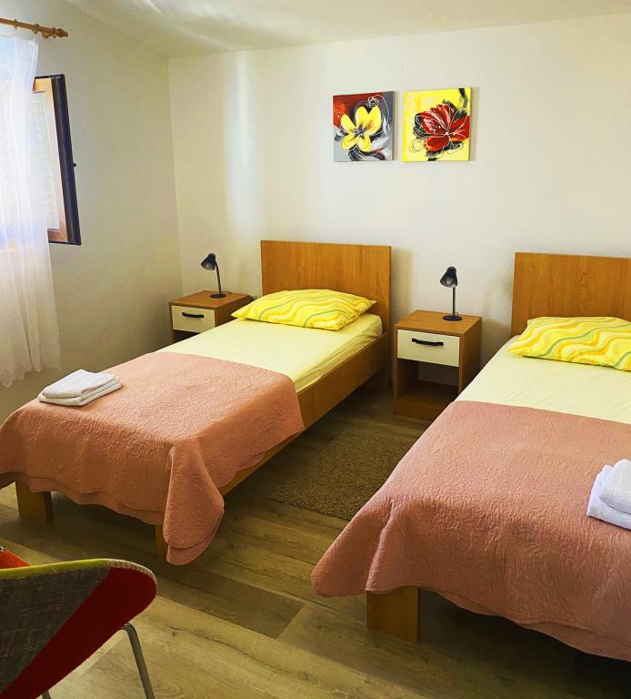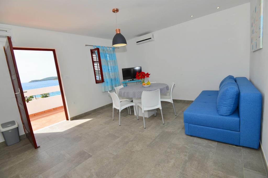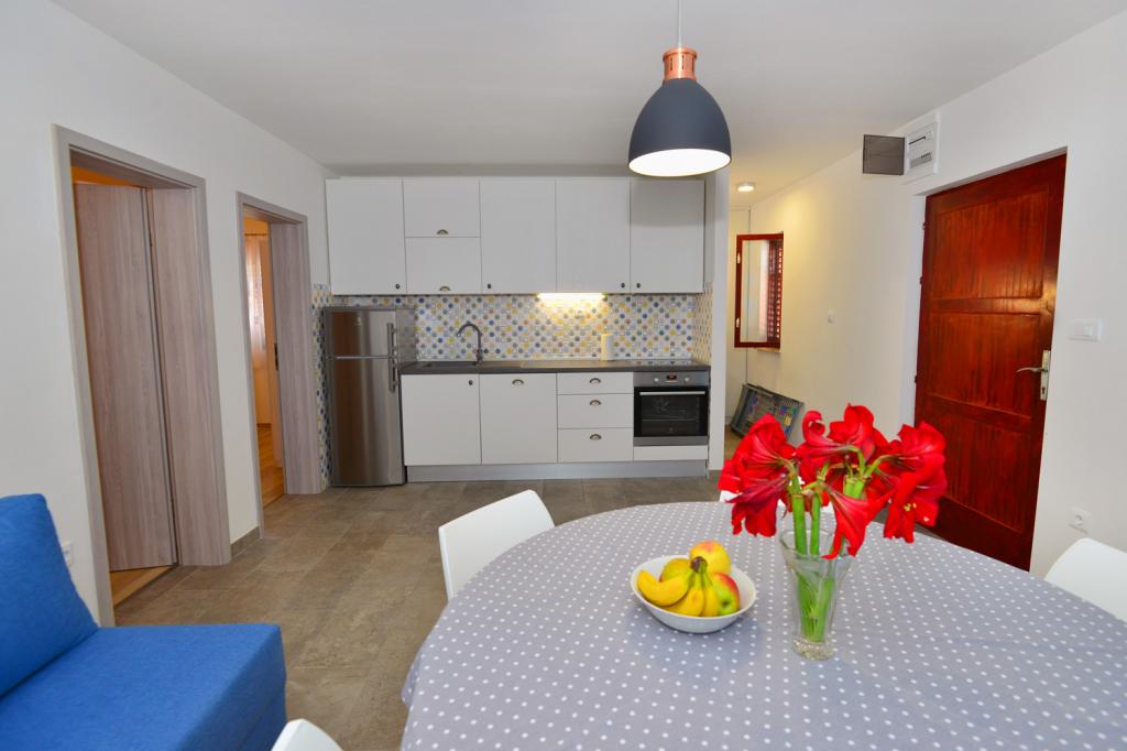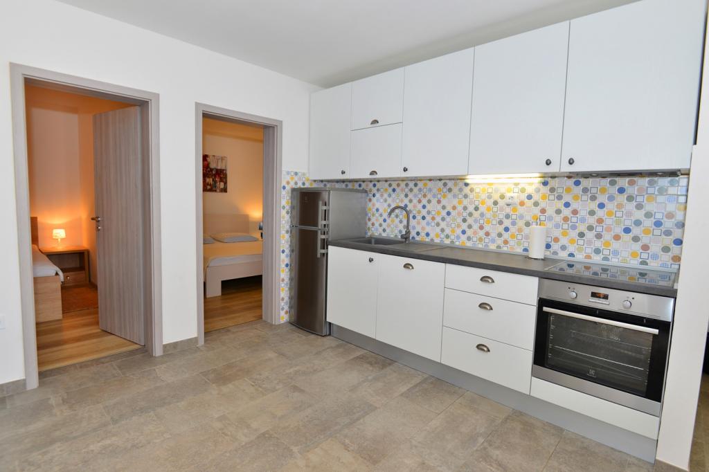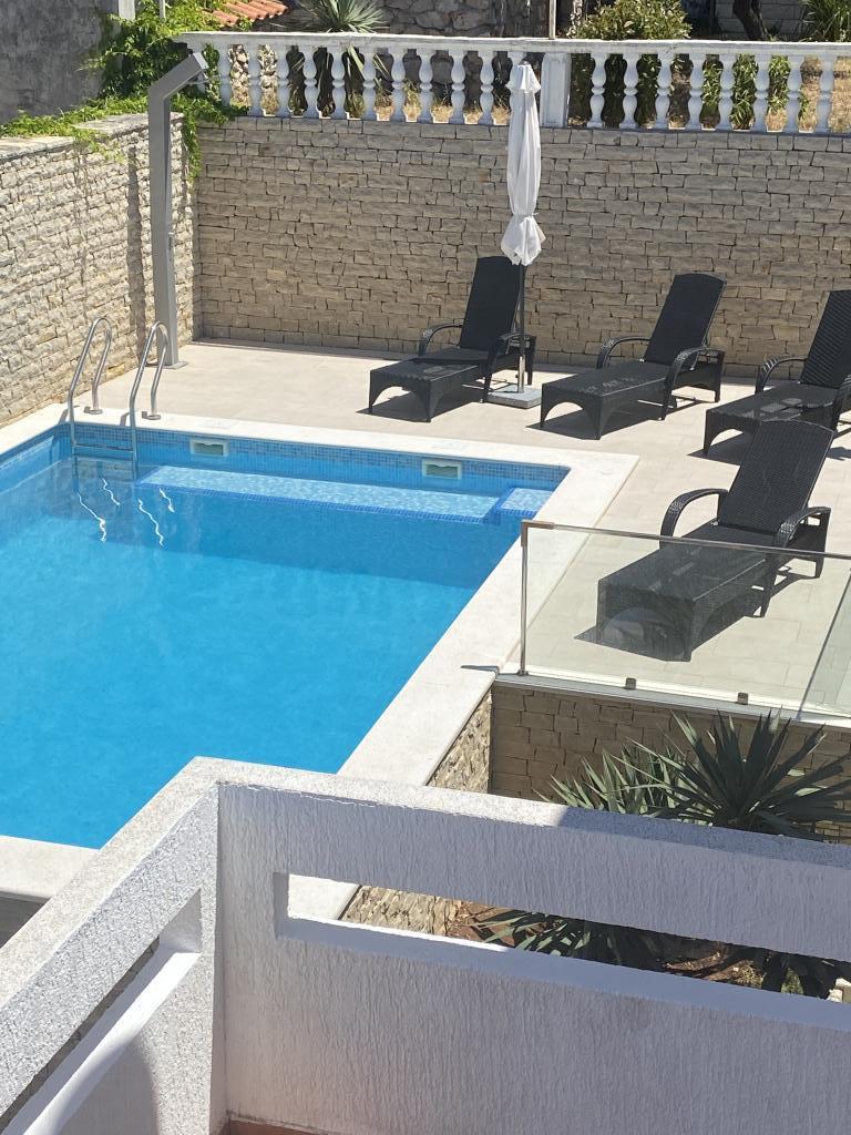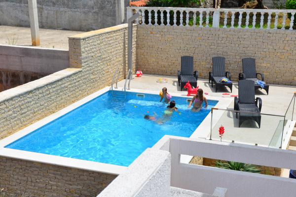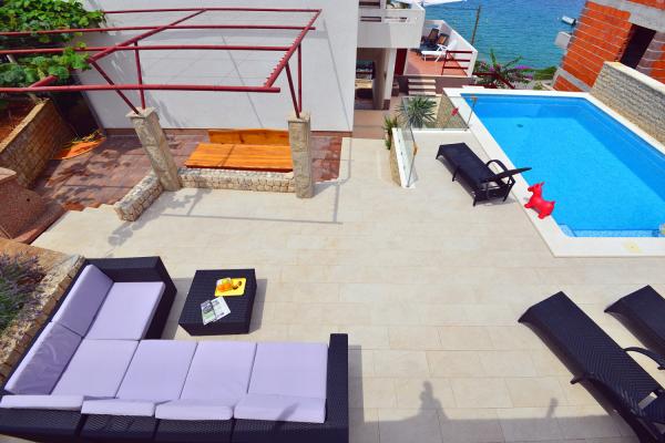 Die Wohnungen sind sehr komfortabel und sind in einem Haus befindet sich neben dem Meer. Direkt über dem kleinen Strand. Der Strand ist sandig und ideal für Familien mit Kindern. Die Gäste, die eine intime Aufenthalt am Meer für stijenovite Teile der Küste, die in einem kurzen Spaziergang erreicht werden kann entscheiden wollen. Die Appartements bestehen aus zwei geräumige Schlafzimmer, Bad, Küche und ein großes Wohnzimmer. Jede Wohnung hat eine Terrasse mit Tisch und Stühlen. Unsere Gäste genießen Kaffee am Morgen auf der Terrasse, die einen fantastischen Blick auf das Meer und das Meer. Neben dem Haus befindet sich ein Swimmingpool für die Gäste in unseren zwei Wohnungen untergebracht geteilt. Neben dem Pool ist ein großer Garten mit Liegestühlen und Esstisch. Die Gäste können einen neuen Grill, der für ihre Anwendung festgelegt ist zu verwenden. Die Wohnung ist frei Verwendung im Internet. Entfernung zum kleinen Markt beträgt 50 Meter. In der gleichen Entfernung befindet sich ein Restaurant / Pizzeria. Entfernung Stadt Ražanj ist 500 m. Die Freude an einem Spaziergang zum Ražanj, weil der Weg am Meer