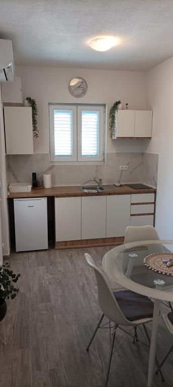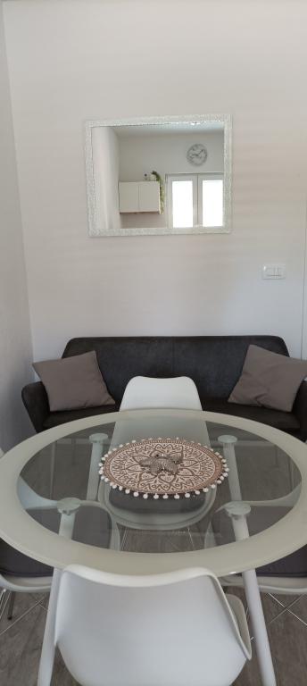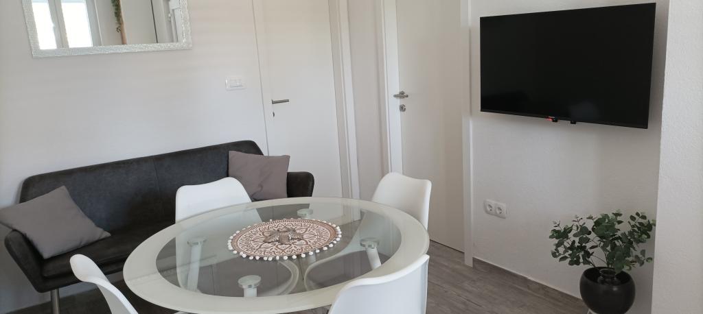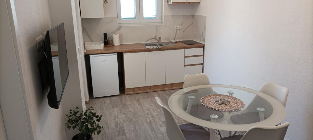 Es handelt sich um eine Wohnung in einem Einfamilienhaus im Erdgeschoss. Die Fläche der Wohnung beträgt 30 m2 und sie verfügt über einen Balkon mit Sitzecke. Die Wohnung besteht aus einem Küchenbereich, einem Wohnzimmer, einem Badezimmer und einem Schlafzimmer mit einem Doppelbett und einem Sofa, das bei Bedarf zu einem Bett für eine Person ausgeklappt werden kann. Es ist für maximal zwei bis drei Personen geeignet. Kostenlose Parkplätze stehen zur Verfügung. Die Entfernung zum Strand beträgt 200 Meter. In Ražnje gibt es mehrere Restaurants, ein Lebensmittelgeschäft, ein Café und eine Bäckerei.
