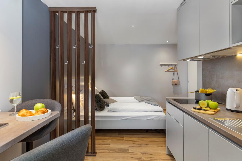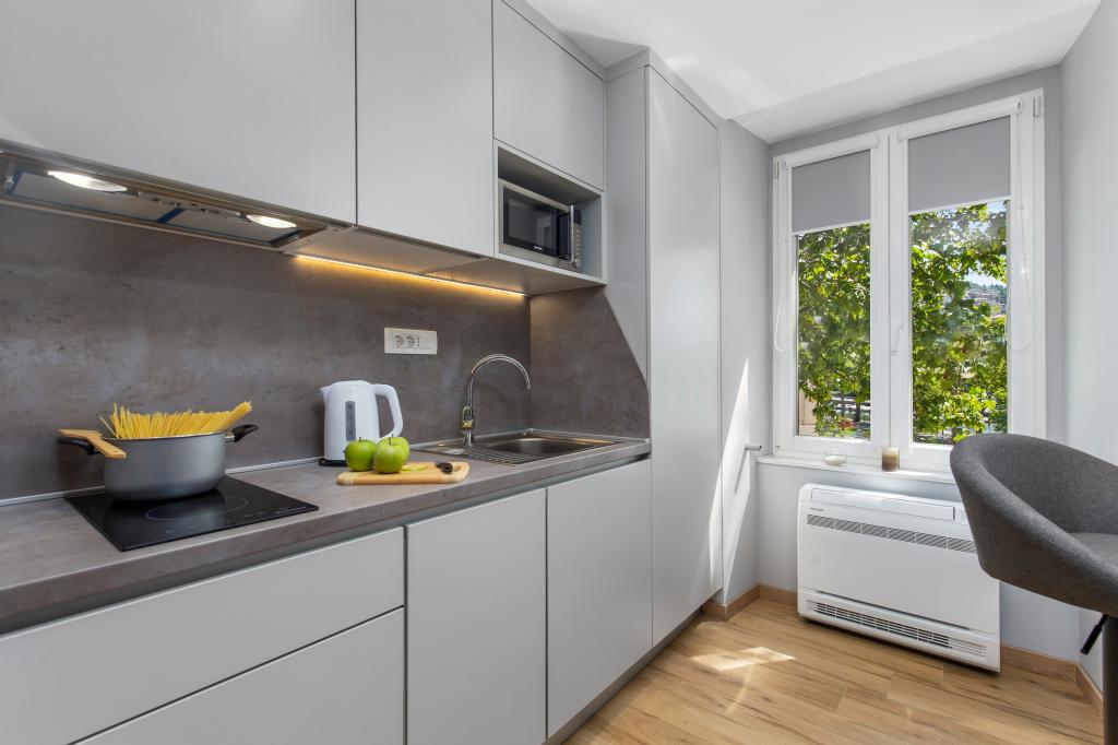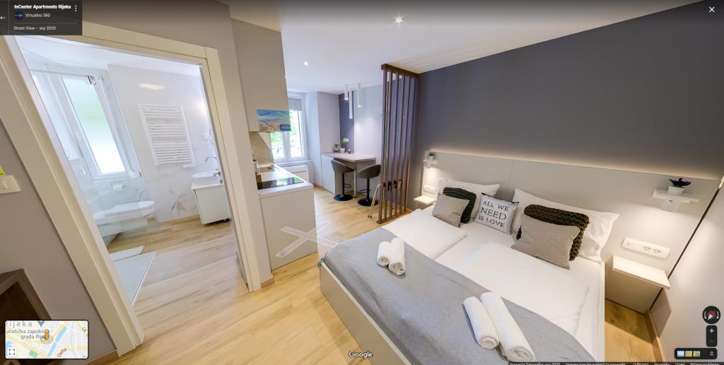 Die InCenter Apartments Rijeka befinden sich im Herzen von Rijeka, direkt neben dem Korzo – die ideale Lage für Gäste, die alles in unmittelbarer Nähe haben und die Stadt bequem zu Fuß erkunden möchten. Studio-Apartments im Zentrum von Rijeka – Self-Check-in, direkt am Korzo. Unser modern eingerichtetes Studio ist perfekt für Paare, Alleinreisende und Geschäftsreisende, die einen komfortablen, praktischen und unkomplizierten Aufenthalt im Stadtzentrum suchen. Ein großer Vorteil ist der Self-Check-in per PIN, der eine schnelle, flexible und stressfreie Anreise ermöglicht. Das Apartment bietet alles, was Sie für einen angenehmen Aufenthalt benötigen: ein Kingsize-Bett und einen hellen, offenen Wohnbereich, eine voll ausgestattete Küche mit Geschirrspüler, Kühlschrank, Mikrowelle, Wasserkocher, Kaffeemaschine und Geschirr, ein modernes Badezimmer mit ebenerdiger Dusche und Haartrockner, Klimaanlage, TV mit MaxTV IPTV, Netflix und schnellem WLAN. Parkplätze befinden sich in der Nähe. Restaurants, Geschäfte, öffentliche Verkehrsmittel und die wichtigsten Sehenswürdigkeiten der Stadt sind nur wenige Schritte vom Apartment entfernt. Das Apartment befindet sich im 2. Stock (ohne Aufzug). Suchen Sie ein modernes Studio-Apartment im Zentrum von Rijeka mit erstklassiger Lage, guter Anbindung und allem, was Sie für einen Kurz- oder Geschäftsaufenthalt benötigen? Dann sind die InCenter Apartments die perfekte Wahl. Virtuelle 360°-Tour und weitere Informationen finden Sie unter: www.incenter.com.hr