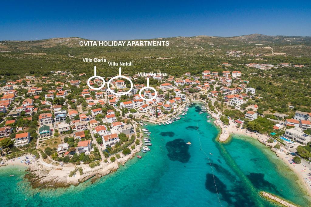 Liebe Gäste, wenn Sie einen angenehmen und erholsamen Urlaub der gehobenen Kategorie in freundlicher Umgebung suchen, sind Sie bei uns genau richtig! In unserem familiengeführten Resort, das etwa 5000 m2 umfasst, bieten wir Ihnen neun exklusive Apartments, die sich in drei Villen befinden, Villa MARTINA (30 m vom Meer entfernt), Villa NATALI (100 m vom Meer entfernt) und Villa DARIA (150 m vom Meer entfernt). das Meer) ). Unser Resort umfasst einen großzügigen Innenhof mit Kinderspielplatz, einen Sportspielplatz und einen privaten Pool mit Sonnendeck, der ausschließlich unseren Gästen zur Verfügung steht. Unsere Familienmitglieder stehen Ihnen während Ihres gesamten Aufenthalts zur Verfügung und versuchen, alle Ihre Bedürfnisse zu erfüllen und Ihren Urlaub so angenehm wie möglich zu gestalten. Willkommen bei CVITA Ferienwohnungen!