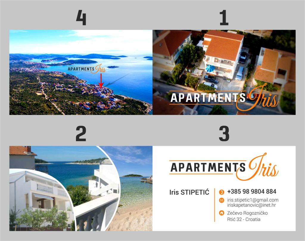 Iris Apartments befinden sich in einem kleinen Touristenort gelegen Zecevo, zweite Reihe vom Meer, 40 Meter vom schönen Sandstrand angeordnet. In der Nähe des Strand ist das Leben ist reich an Inhalten, die Catering-Einrichtungen (Restaurants, Liegestühle, gekühlte Getränke, Kaffee, Eis) bieten. Am Strand sie 4 Liegestühle durch den Host im Besitz sitzt, eindeutig gekennzeichnet und Gäste frei sie verwenden können. Entlang des Strandes mindestens JAZ befindet, wo können Sie sich in einem Badeanzug erfrischen. Das Dorf wird jeden Morgen mit frischem Brot versorgt und von Transportern 7-9 Stunden am Morgen transportiert Brötchen. Die größere Stadt Rogoznica, die nur 30 Minuten zu Fuß entfernt Promenade, die für sportliche Aktivitäten (Radfahren, Joggen) oder 10 Minuten mit dem Auto geeignet ist. Die Versorgung mit Lebensmitteln ist in den Supermärkten (am Eingang zum Rogoznica) und mehrere kleineren Geschäfte im Ort Rogoznica zur Verfügung.