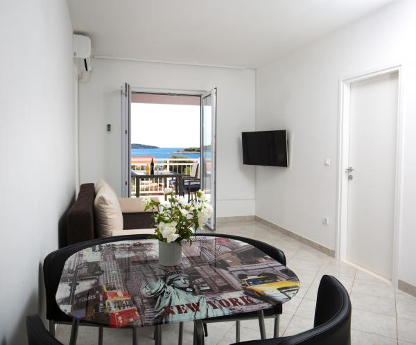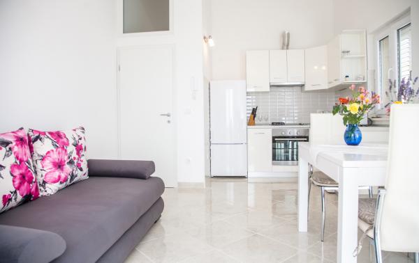 Eine komfortable Wohnung für 4-6 Personen mit einem schönen Blick auf das Meer vom Balkon. Sie finden alles, was Sie brauchen (einschließlich Fernseher mit Internetanschluss, Mikrowelle, Staubsauger und Waschmaschine auf Anfrage) Freundlich und hilfsbereit, Gastgeberin. Eine komfortable und moderne Terrasse. Es war die beste Wohnung, in der wir bisher in Kroatien gelebt haben - und das war unser zwölftes Mal. Zu einem wirklich guten Preis. Ich kann es nur empfehlen!
