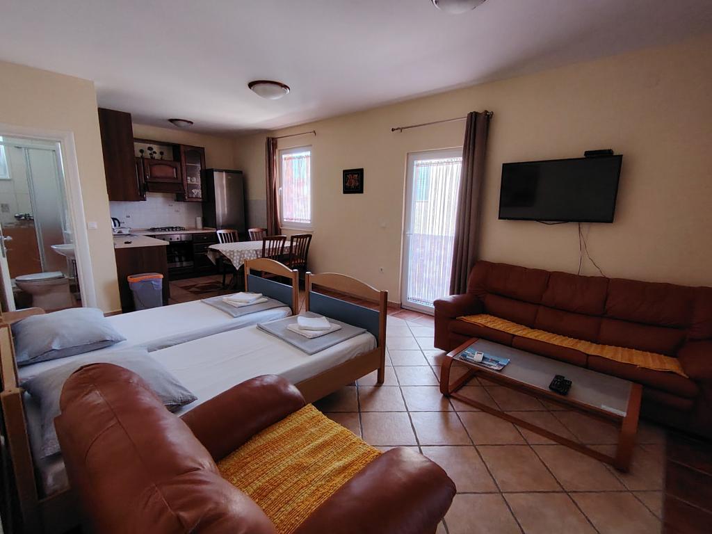 Willkommen in den Luce Apartments! Wir befinden uns in einer ruhigen Siedlung im ersten Stock eines Einfamilienhauses, 80 m vom Strand entfernt. Ap1 (2+2) Ap2 (2+0) �Privater geräumiger Balkon �Kostenlose Parkplätze im Hof �Klimaanlage �WLAN Rogoznica liegt an der dalmatinischen Küste im Zentrum vieler kulturell und historisch bedeutender kroatischer Städte wie Split ( 44 km), Solina (42 km), Šibenik (33 km), Trogir (23 km), Primosten (8 km). Die Vielfalt der Strände, von der Bucht bis zum offenen Meer, ermöglicht es Ihnen, die ganze Schönheit dieser kleinen dalmatinischen Perle zu genießen, ideal für einen Familienurlaub! Wenn Sie sich nach Erholung sehnen, können Sie den Aussichtspunkt erklimmen und die Aussicht auf die Stadt und die Umgebung genießen oder einen Spaziergang durch den dichten Wald und ein kleines Gartenlabyrinth unternehmen. Für sportlich Aktive bietet das Radfahren und Joggen durch den Wald und entlang der Küste eine besondere Atmosphäre, die sich lohnt. Nicht zu vergessen sind Bootsfahrten zum Kornati-Nationalpark und ein Besuch des Zmajevo-Sees, um den sich ein dalmatinisches Naturphänomen befindet. Wir wünschen Ihnen unvergessliche Erinnerungen im schönen Rogoznica!