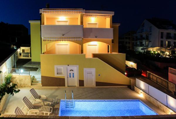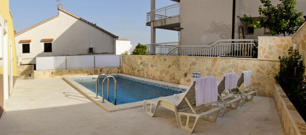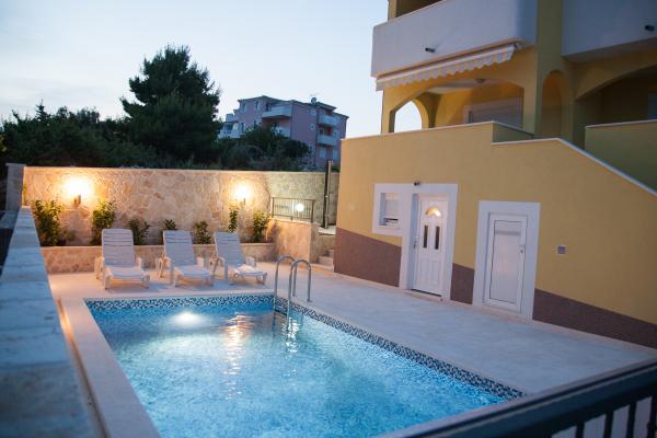 Die modern eingerichteten Apartments mit hohem Standard und gut ausgestattet. Es verfügt über einen Swimmingpool. Ganz in der Nähe des Meeres. Ein separater Strand mit Liegestühlen und parasolami.Na Strandbar serviert köstliche Kaffee und kalte Getränke. Sehr freundliche und herzliche Gastgeber. In der Nähe des Nationalpark Krka, Rogoznica - Marina Frapa, Primosten. Der perfekte Ort für unbeschwerte Urlaubstage.