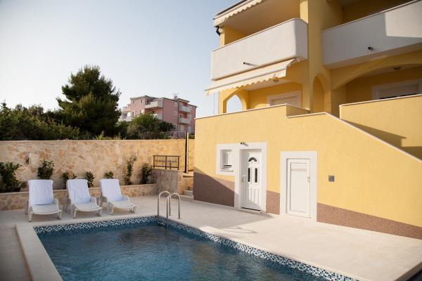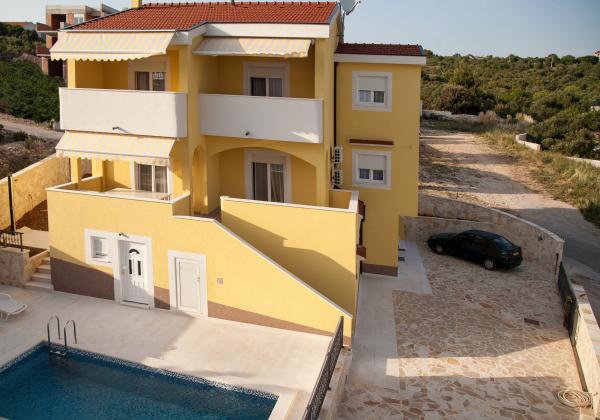 Haus mit Pool und 3 moderne Apartments in der Nähe von Zecevo Rogoznica, liegt 30 Meter vom Strand entfernt. Das Anwesen befindet sich 3 km von Rogoznica und 6 km von Primosten entfernt.