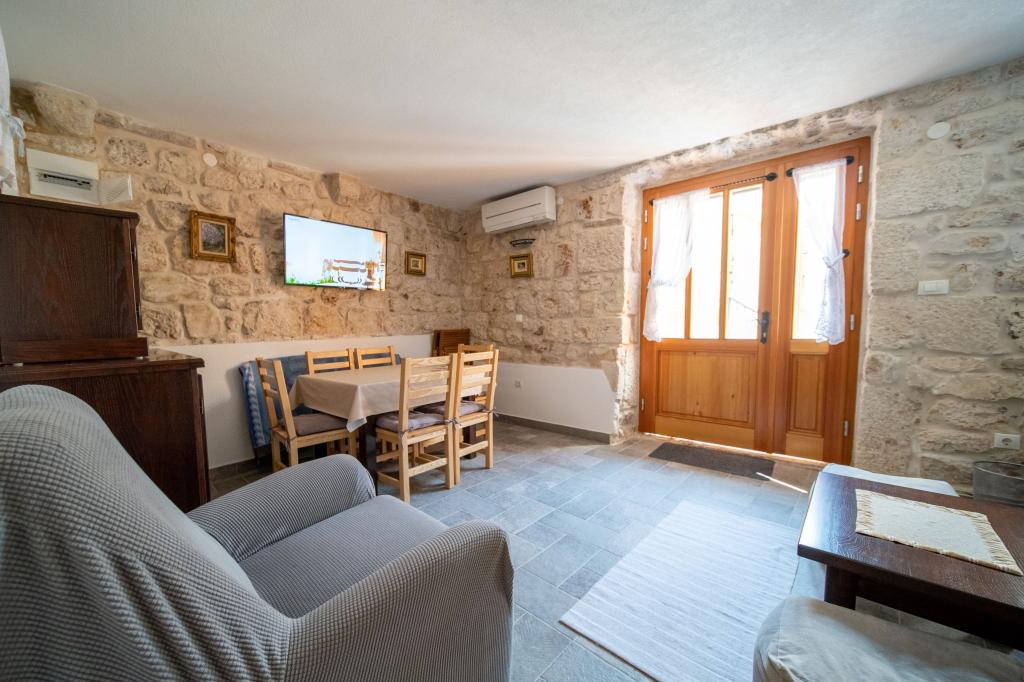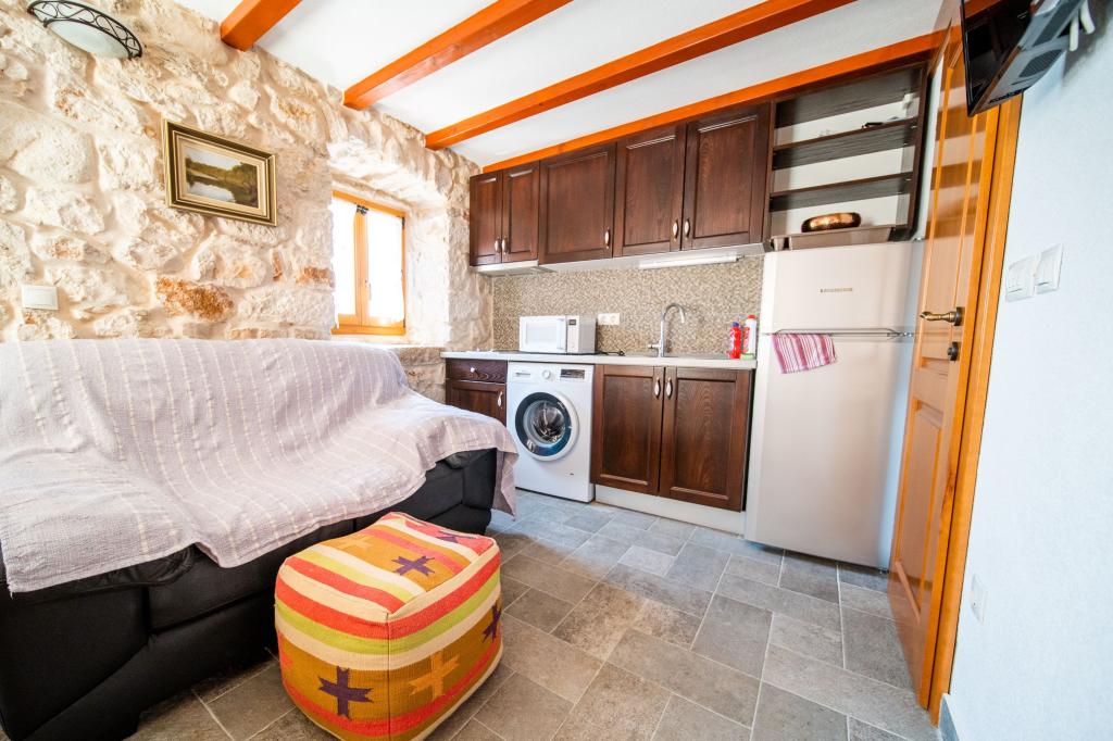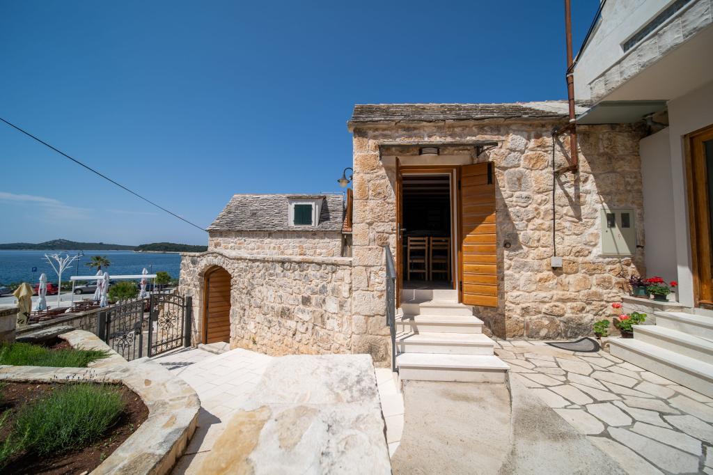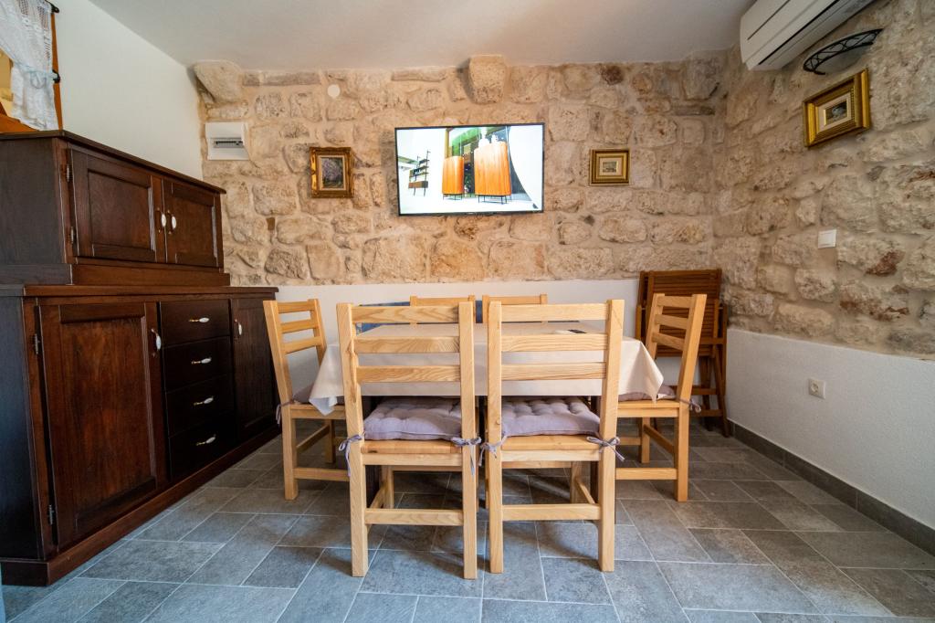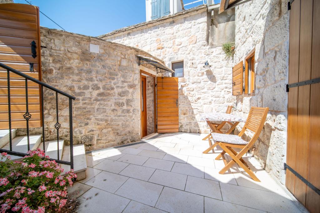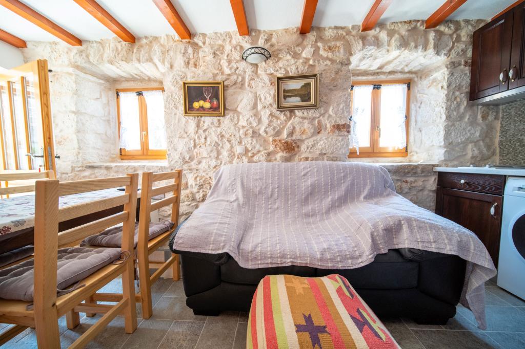 Zwei neu renovierte Apartments in einem mediterranen Steinhaus im Zentrum des charmanten Rogoznica im Herzen Dalmatiens auf der Halbinsel. Nur 50 m vom Meer und der Uferpromenade entfernt. Für Gäste, die einen Urlaub in einem traditionellen mediterranen Steinhaus in der Nähe aller Annehmlichkeiten von Rogoznica erleben möchten. Große Terrasse mit Meerblick.