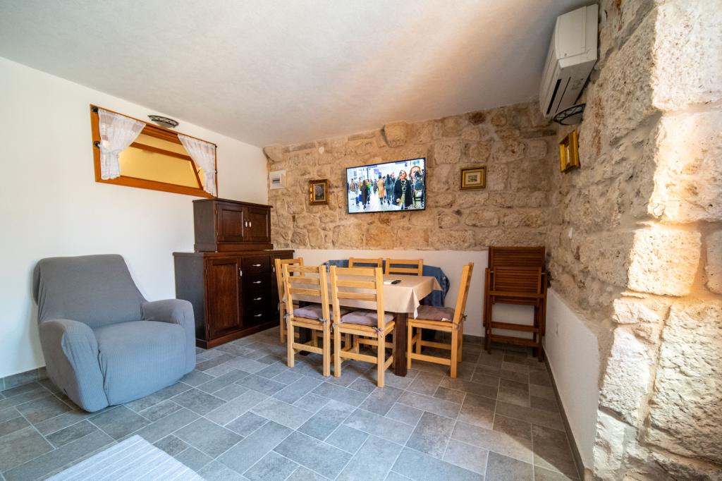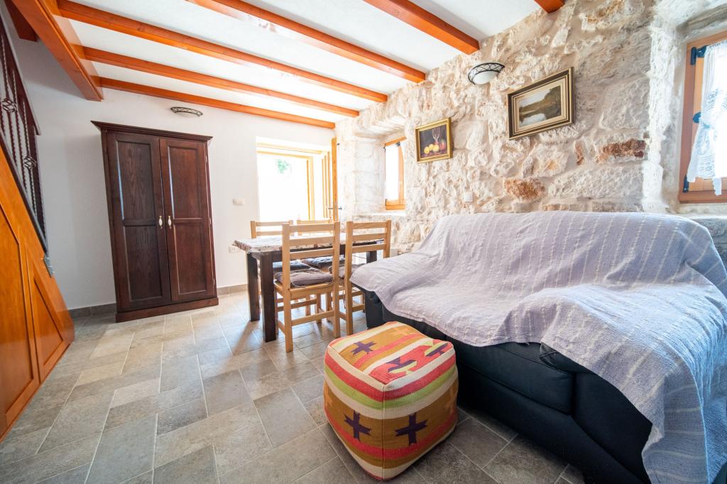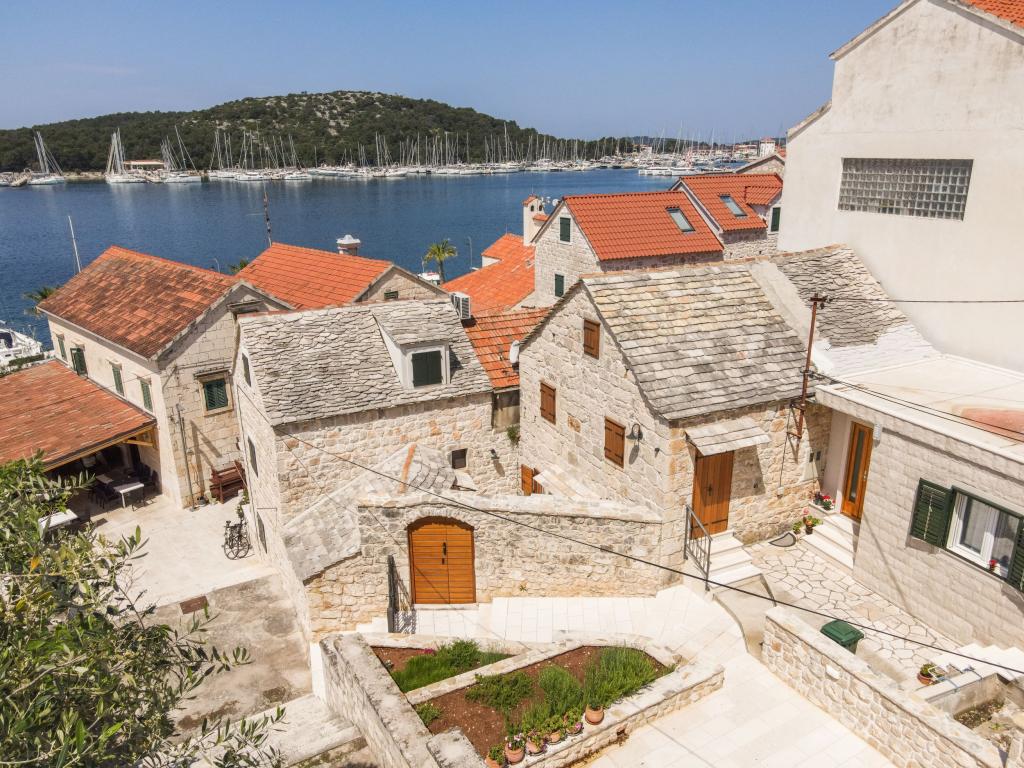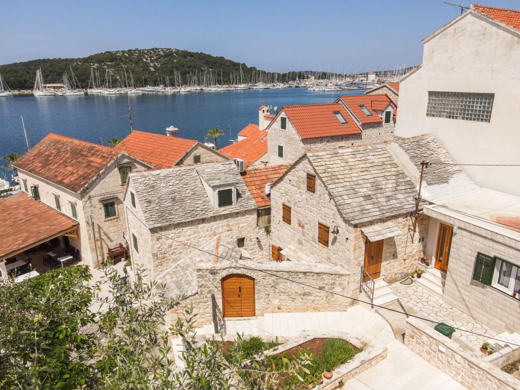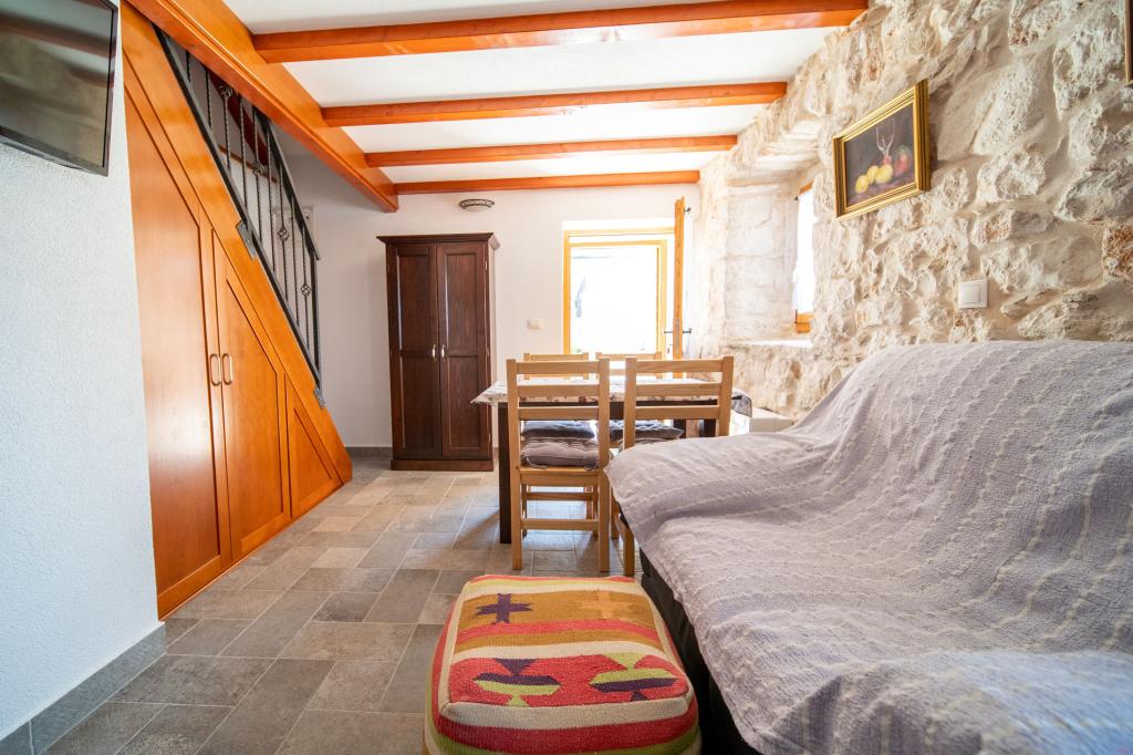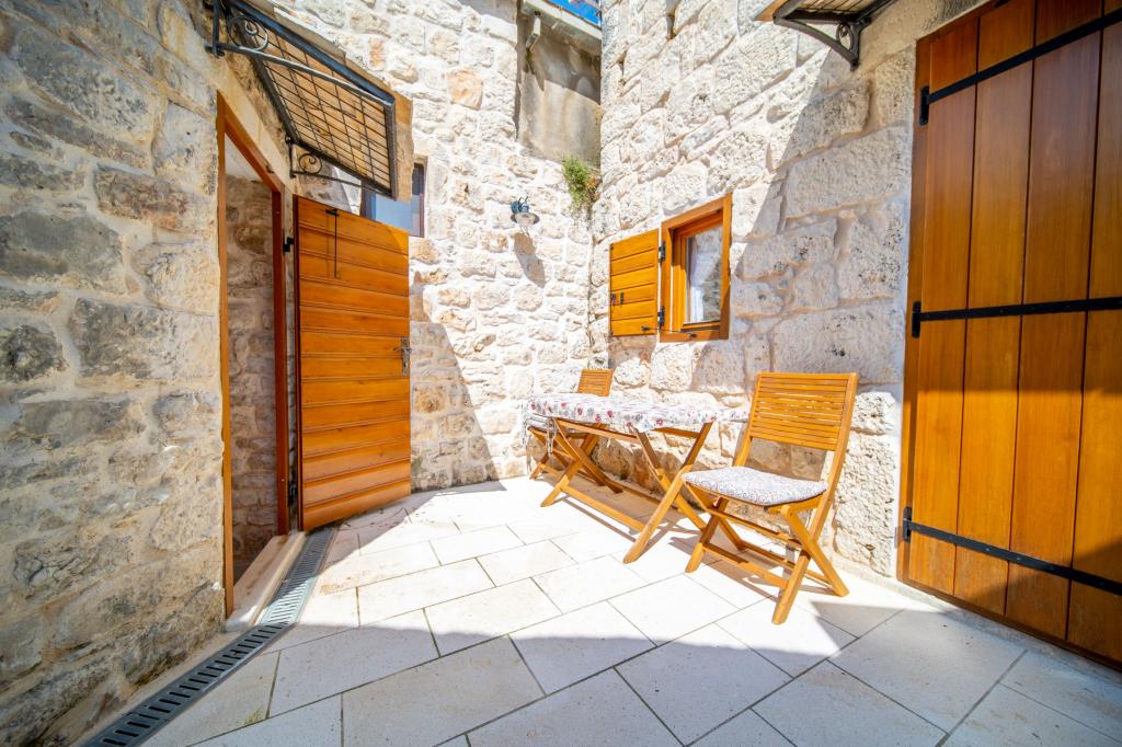 Zwei neu renovierte Apartments in einem mediterranen Steinhaus im Zentrum des charmanten Rogoznica im Herzen Dalmatiens auf der Halbinsel. Nur 50 m vom Meer und der Uferpromenade entfernt. Für Gäste, die einen Urlaub in einem traditionellen mediterranen Steinhaus in der Nähe aller Annehmlichkeiten von Rogoznica erleben möchten. Große Terrasse mit Meerblick.
