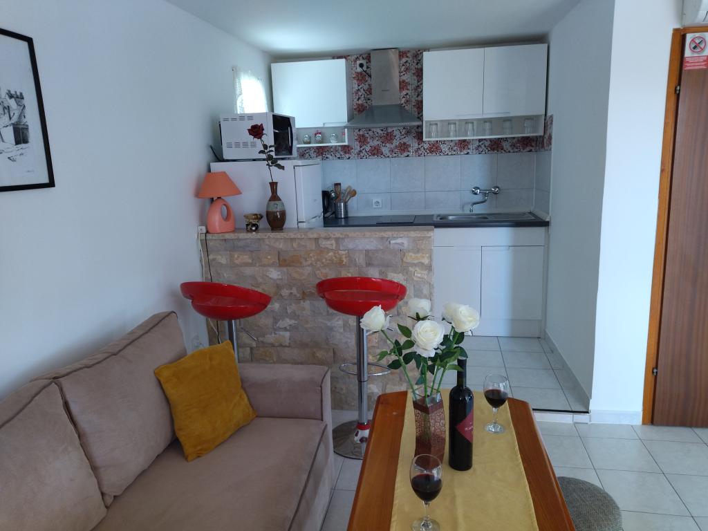 Dieses Ferienhaus war für unsere Familie von 5 Personen, wie ein Traum. Das Hotel war neu und sauber, Gastgeber waren freundlich. Wir hatten genug Platz für alle. Wir genossen die herrliche Aussicht vom Balkon auf das Meer. Die Wohnung befindet sich auf dem Hügel in einem ruhigen Platz. Bars, Restaurants und Geschäfte sind in wenigen Minuten zu Fuß (30 Minuten). Das Wichtigste - Meer ist mit sauberem Wasser und warm.