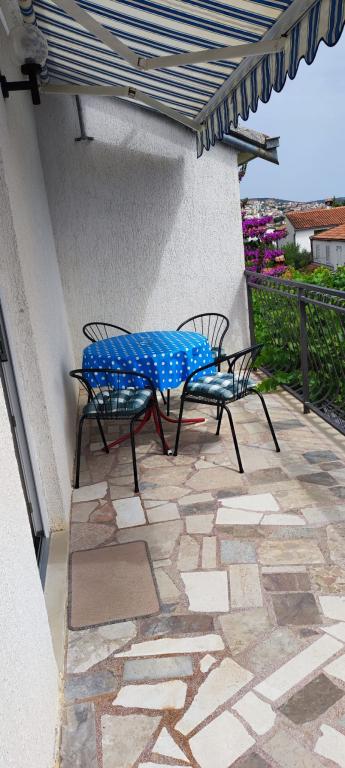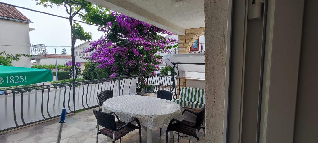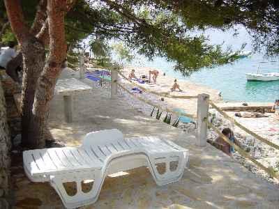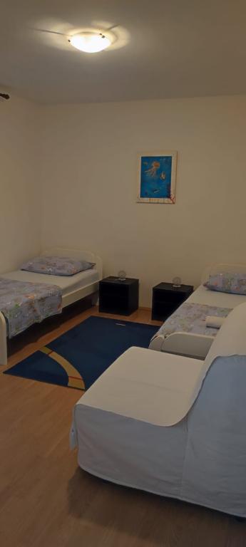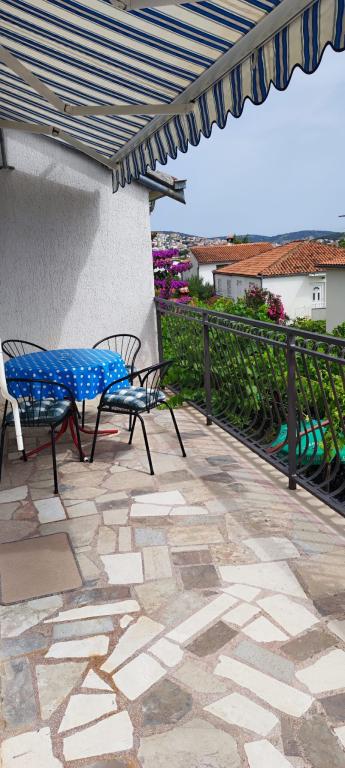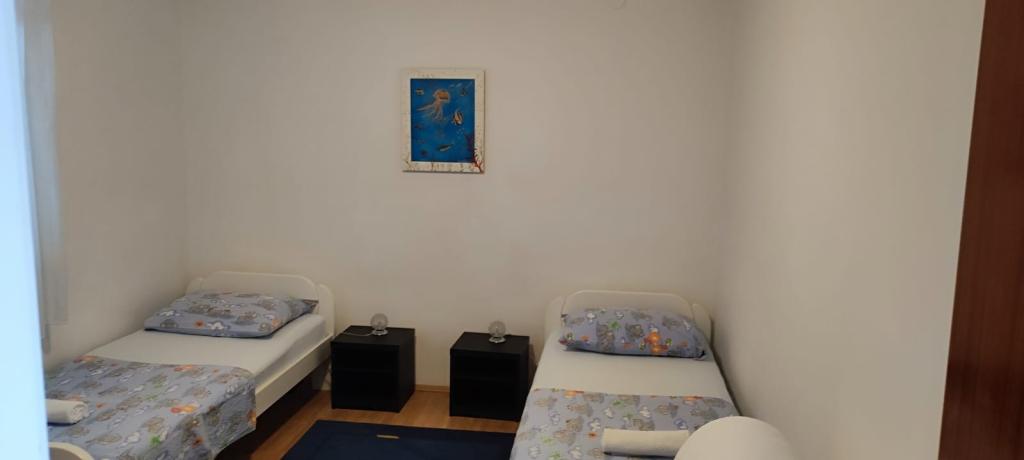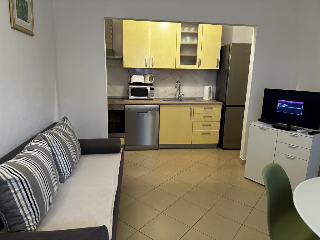 Die Wohnung befindet sich in einem Haus mit drei Wohnungen in unmittelbarer Nähe zum Meer in einer ruhigen Umgebung von Einfamilienhäusern. Im Hof des Hauses gibt es einen gesicherten Parkplatz für die Gäste, und die Apartments sind von einem Garten mit mediterranen Pflanzen umgeben. Beide Wohnungen haben zwei Schlafzimmer, Badezimmer, Wohnzimmer mit Küche und große Balkone. Die Wohnung im Erdgeschoss verfügt über einen Balkon von ca. 30 m2 und die Wohnung im ersten Stock 15 m2 mit Blick auf die nahe gelegenen Inseln. Die Küche ist mit allen notwendigen Geräten ausgestattet: Kühlschrank, Backofen, Herd, Mikrowelle, Wasserkocher und allen anderen Küchengeräten. Die Gäste können auch den Grill im Hof des Hauses benutzen. Wi-Fi Internet ist in den Apartments verfügbar. Die Wohnungen sind mit Klimaanlage ausgestattet.
