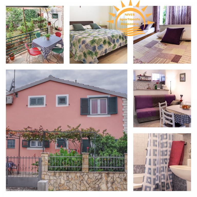 Wir verbrachten die letzten 10 Tage im Juni 2021 in der Wohnung Nives. Es ist eine große und komfortable Wohnung für 5 Personen mit zwei Schlafzimmern, Bad, Wohnzimmer und Küche. Darüber hinaus eine sehr große, komfortable Terrasse, die von Pflanzen beschattet wird, die in einem schönen Garten wachsen. Im Garten befindet sich ein Grill mit überdachter Außenküche und einem Esstisch. Die Wohnung ist komplett ausgestattet, sogar mit einem Bügeleisen und einem Mixer stehen den Gästen zur Verfügung. Aufgeregte, gastfreundliche Besitzer begrüßten uns mit Rakija und kaltem Bier. Ein paar Minuten zu Fuß zum Strand, sowie in die Stadt. Wir empfehlen!