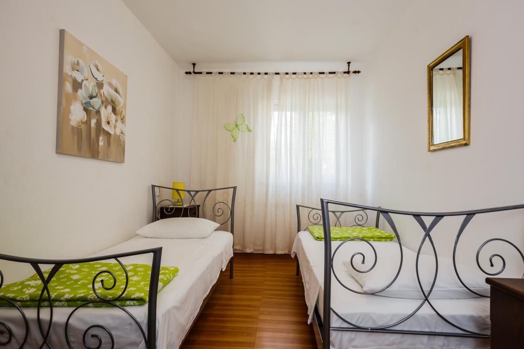 Die Villa Perla liegt in einem ruhigen Teil von Rogoznica, 100 m vom Strand und 500 m vom Zentrum entfernt. Jede Wohnung ist geräumig, komfortabel eingerichtet, ca. 70 m2 groß und verfügt über zwei Schlafzimmer, ein Wohnzimmer, eine Küche, ein Badezimmer und eine Terrasse. Vor dem Haus befindet sich ein großer Parkplatz im Schatten von Olivenbäumen. Ein weitläufiger Garten und Garten mit verschiedenen mediterranen Pflanzen und Blumen, Außenduschen, ein Grill und ein wunderschönes Natursteinhaus ermöglichen einen perfekten Urlaub und eine Auszeit vom Alltag. Der nächste Strand liegt in der Bucht und ist teils sandig, teils felsig mit einer kleinen Strandbar. Rogoznica ist auch für Marina Frapa bekannt, wo Sie verschiedene Arten von Unterhaltung, Sport, Tennis, Tauchen, Schwimmbäder, Restaurants, Cafés und ein Casino finden. Die Anlage bietet Fahrräder zur Nutzung an, da es in der Umgebung wunderschöne Radwege und Panoramen gibt. Die Eigentümer bieten auch einen kleinen Tagesausflug mit dem Boot zu den nahe gelegenen Inseln an.