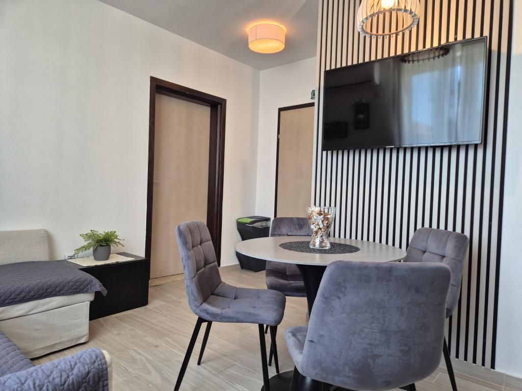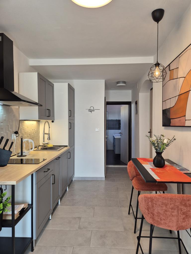 Das Apartment Skorin befindet sich in einem Einfamilienhaus auf der Halbinsel Rogoznica, im Zentrum der Stadt. In einem Umkreis von 300 m befinden sich die meisten Einrichtungen und Dienstleistungen, die Rogoznica bietet. Innerhalb des Gebäudes gibt es 4 Wohnungen, so dass jeder die für ihn passende auswählen kann. In den Jahren 2017, 2022 und 2023 wurden die Wohnungen renoviert. 50 m vom Objekt entfernt wurde ein neuer Outdoor-Bewegungsbereich eröffnet.