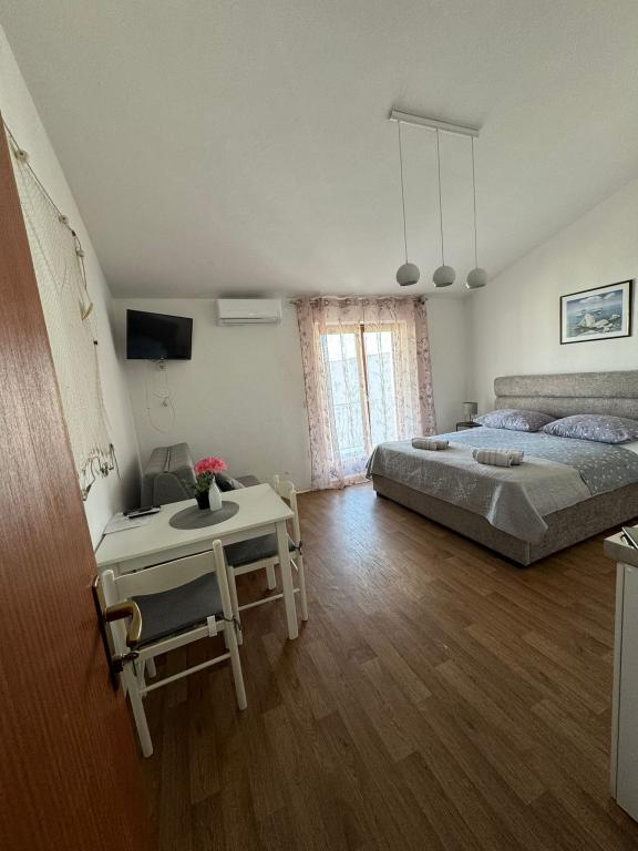Die Wohnung ist wirklich in Strandnähe (eine Minute zu Fuß) mit Getränken, Essen, Schatten, Dusche und allem, was Sie sich wünschen können. Die Lage ist ruhig und sehr schön. Studio bietet alle wichtigen Dinge, die Sie im Urlaub benötigen. Sauber.