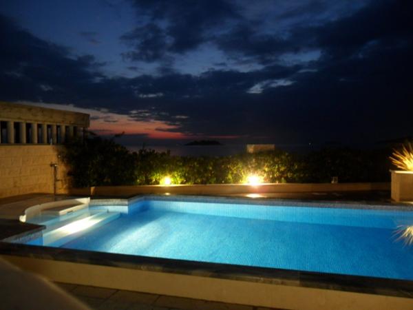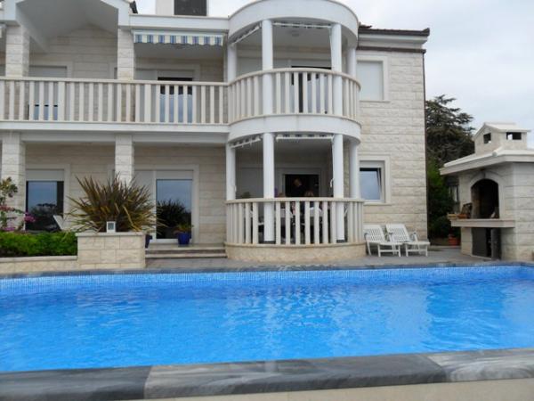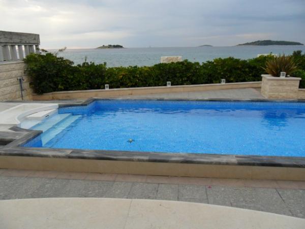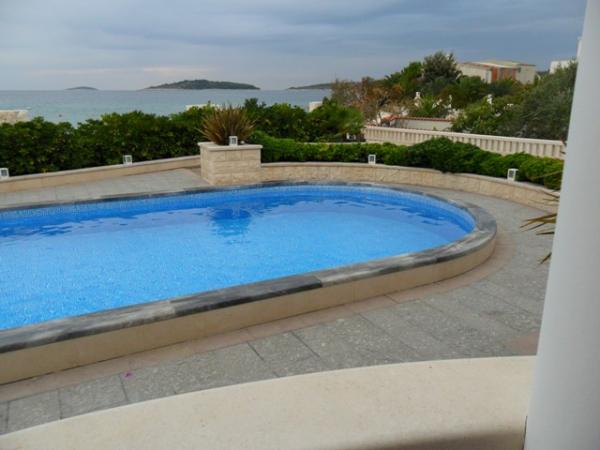 Luxus-Villa mit Pool, nur 5 Meter vom Meer entfernt, mit herrlichem Blick auf den Strand, Meer und Inseln. Die Villa kann als Ganzes gemietet werden, und jede Wohnung separat. Die Gäste können den Pool, Liegestühle, Sonnenschirme, Kamin, Parkplatz.
