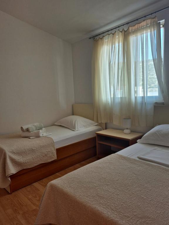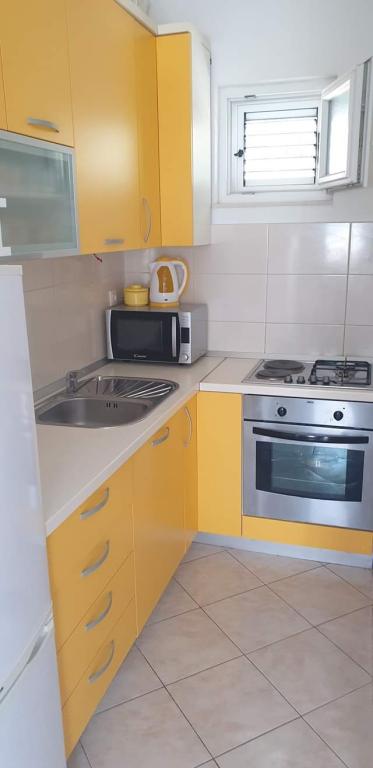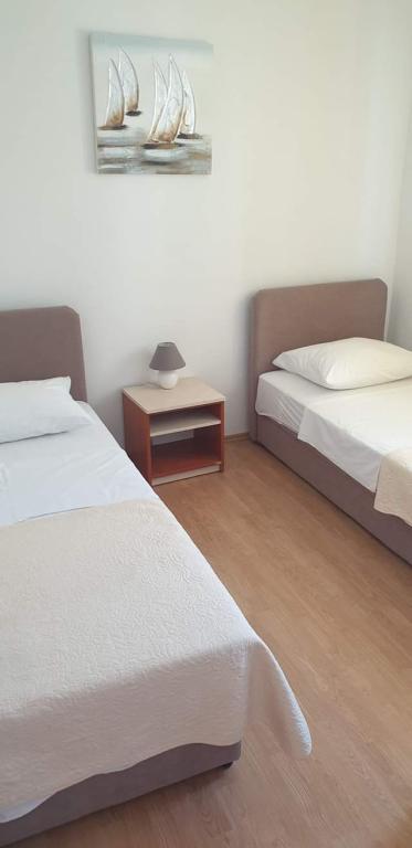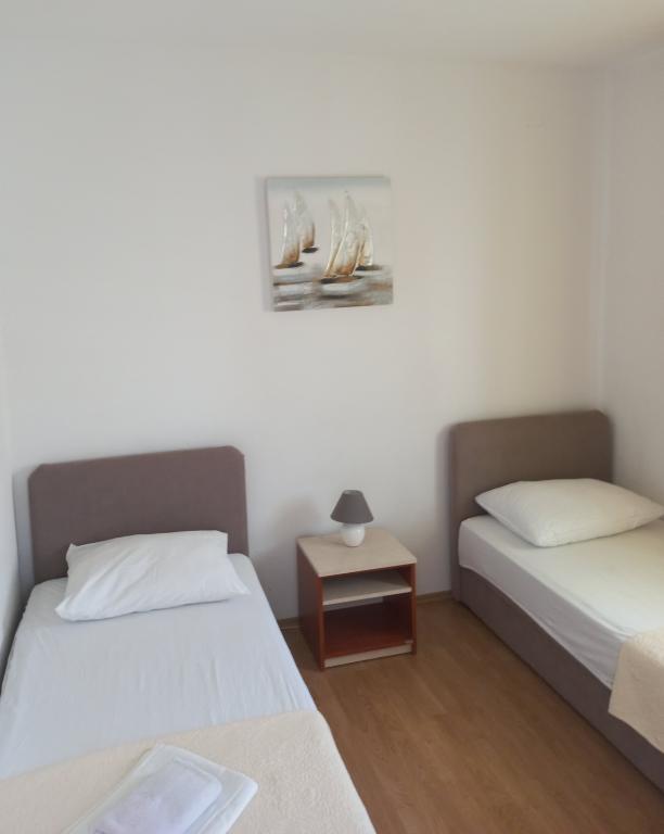 Rogoznica liegt in der Gespanschaft Šibenik-Knin, 32 Kilometer von Šibenik und 60 Kilometer von Split entfernt. Der bewohnte Teil der Küste ist eine der sichersten und geschütztesten Buchten an der Adria. Rogoznica, ein ruhiger mediterraner Ort im Herzen Dalmatiens, ist ein idealer Ort für einen Urlaub mit Familie und Freunden. Jedes der 3 Apartments verfügt über: eine Küche, die für die tägliche Zubereitung aller Arten von Mahlzeiten ausgestattet ist, 2 Schlafzimmer, eine Toilette und eine Terrasse. Klimaanlage im Preis inbegriffen. Wir sind 40 Meter vom Meer entfernt. Wir haben einen eigenen Parkplatz.