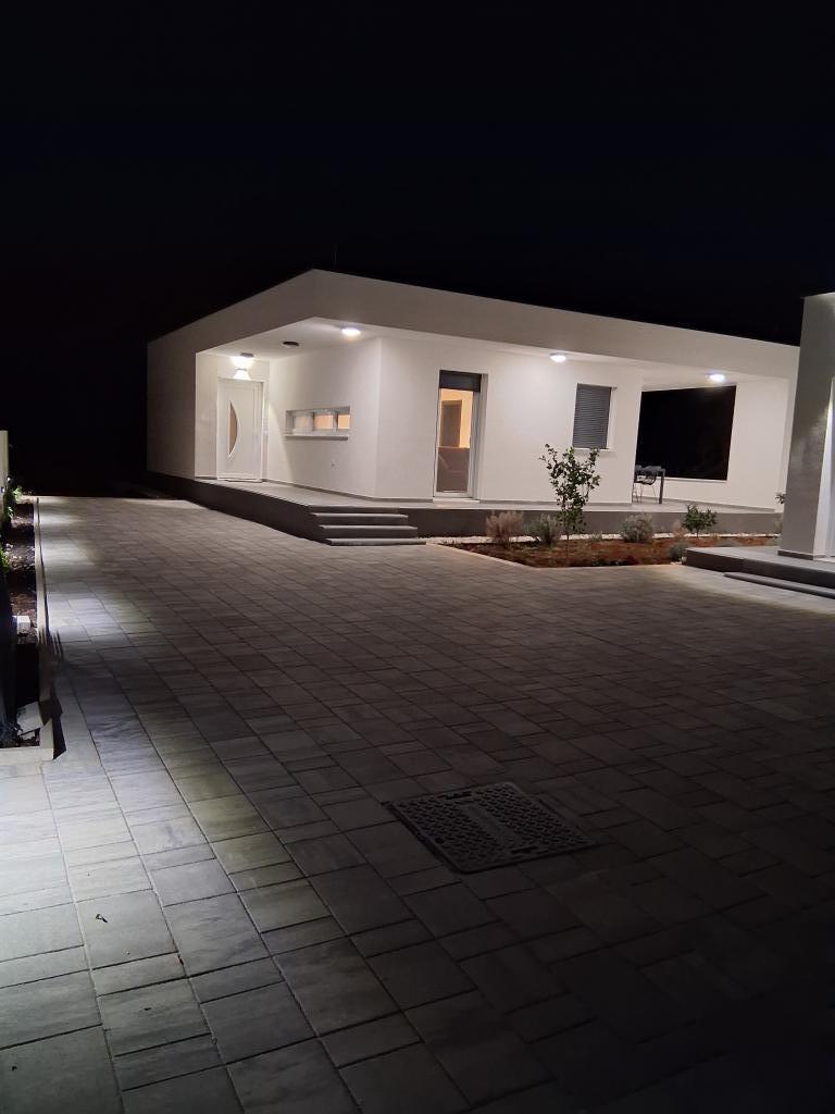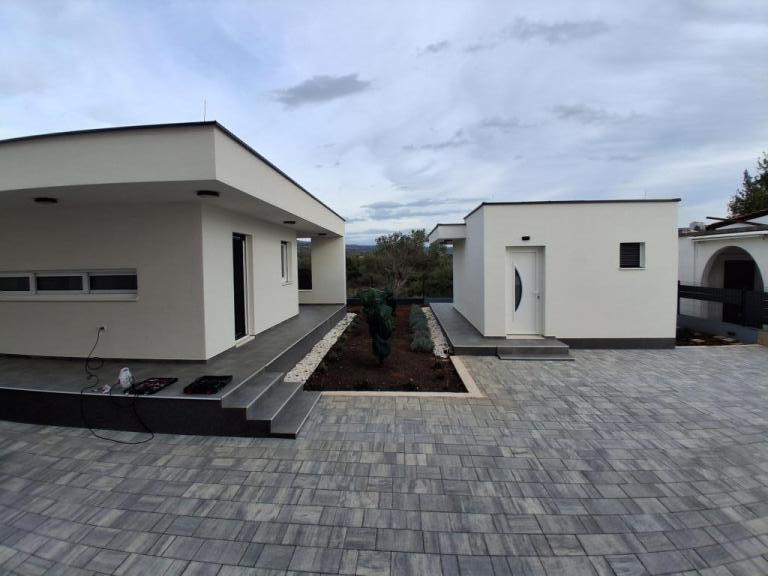 Dieses neue, ebenerdige Haus mit 70 m² Wohnfläche und einer 30 m² großen überdachten Terrasse befindet sich in ruhiger Lage abseits der Straße mit Blick auf einen Olivenhain. Die geräumige Terrasse ist vor den Blicken der Nachbarn geschützt und bietet absolute Privatsphäre. Der Strand ist nur wenige Gehminuten entfernt. Drei private Parkplätze stehen zur Verfügung. Das Haus verfügt über zwei klimatisierte Schlafzimmer (eines mit großem Doppelbett, das andere mit zwei Einzelbetten), ein geräumiges, klimatisiertes Wohnzimmer mit Küche und Essbereich sowie ein großes Badezimmer mit WC. Es ist komplett neu möbliert und mit Smart-TV ausgestattet. Die Terrasse bietet Platz für einen großen Tisch für sechs Personen.
