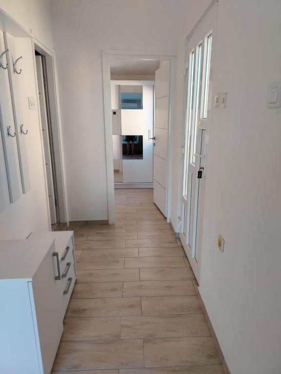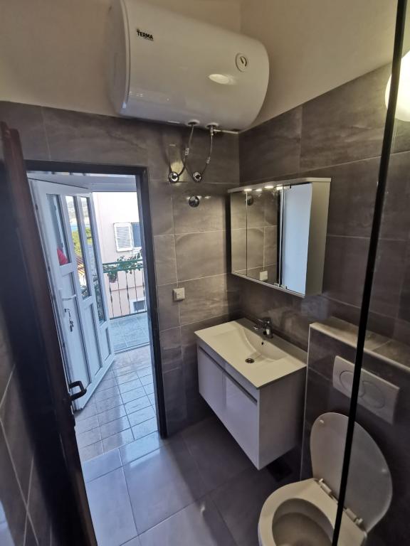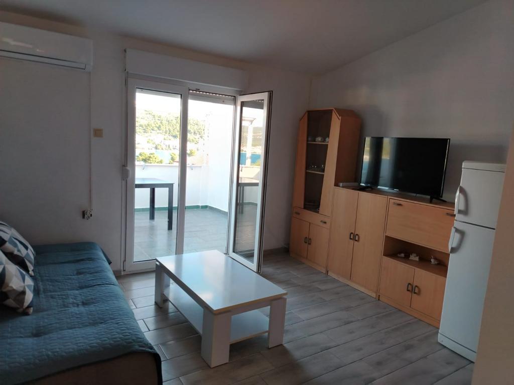Komplett eingerichtete Wohnung in einem ruhigen Teil von Rogoznica (Bezirk Crljina). Die Wohnung ist mit einem Schlafzimmer für 2 Personen (Betten zusammenstellbar und getrennt werden), Küche und Wohnzimmer mit einem Sofa, das in einem zusätzlichen Doppelbett, Bad und Terrasse mit Blick auf das Meer wandelt. Das Haus ist 100 Meter vom Strand und 10 Minuten zu Fuß vom Stadtzentrum entfernt.