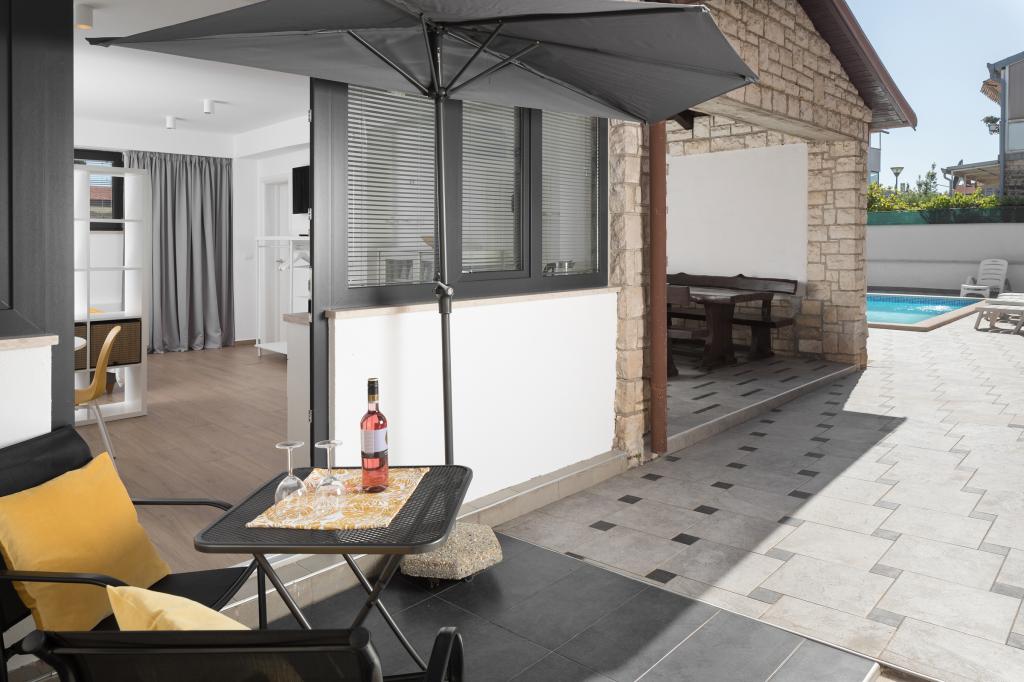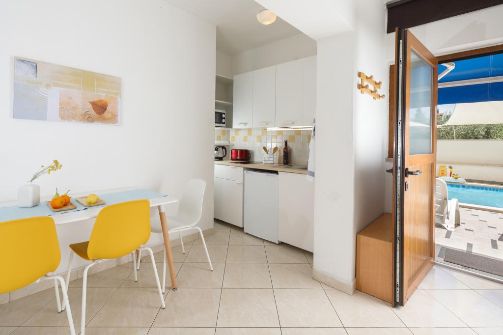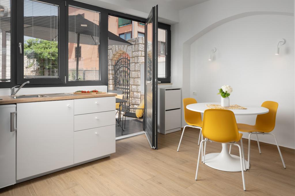 Das Anwesen befindet sich in einem ruhigen Teil der Stadt. In der Nähe befinden sich Restaurants, eine Apotheke und Lebensmittelgeschäfte (10-100 m). Das Stadtzentrum liegt 800 m entfernt und ist in etwa 10 Gehminuten zu erreichen. Der nächste Strand ist etwa 1000 m oder 15 Gehminuten entfernt. Im Hinterhof des Hauses gibt es einen Swimmingpool und eine Liegewiese, die den Gästen für einen angenehmen Aufenthalt und zum Entspannen zur Verfügung steht, umgeben von Grün und geschützt von anderen Häusern.