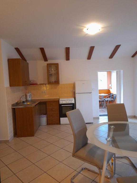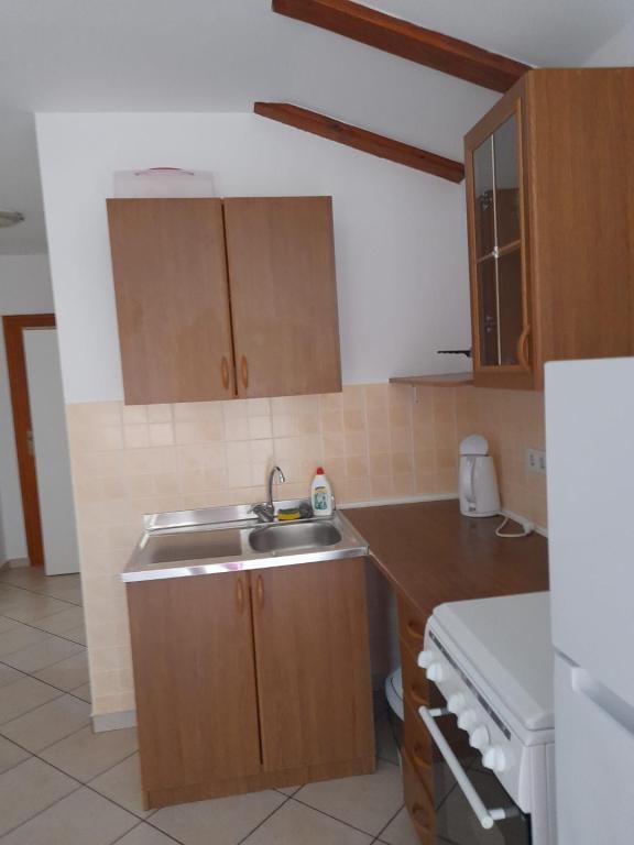 Die Wohnung ist sehr sauber, gepflegt, Küche (Küchenzeile) mit der notwendigen Ausstattung zur Zubereitung einer Mahlzeit ausgestattet - völlig ausreichend, ein zusätzlicher Vorteil ist die überdachte Terrasse, auf der man bei einem Kaffee oder abends bei einem Drink sitzen kann. Die Gegend ist sehr ruhig und man kann sich entspannen. Gastgeberin Frau Dragica sehr nett und hilfsbereit. Bis zum nächsten Strand max. 15 min zu Fuß, in die Stadt ca. 20 min. empfehlen