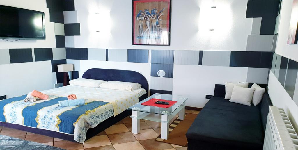 Apartments mit: LCD-TV an der Wand, Safe in jeder Wohnung, kostenlose Fahrräder, Waschmaschine, Videoüberwachung des privaten Parkplatzes, kostenloses WLAN, Holzgrill, Gasgrill, Kinderspielplatz im Garten für die Kleinsten.