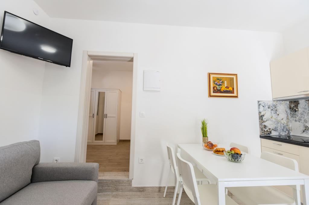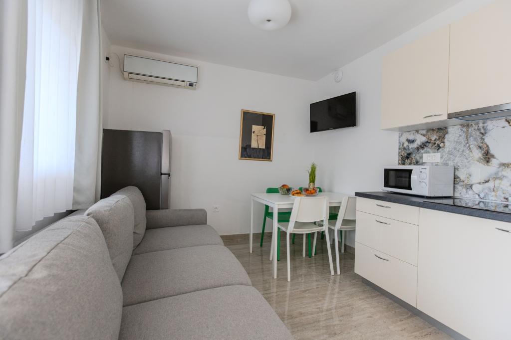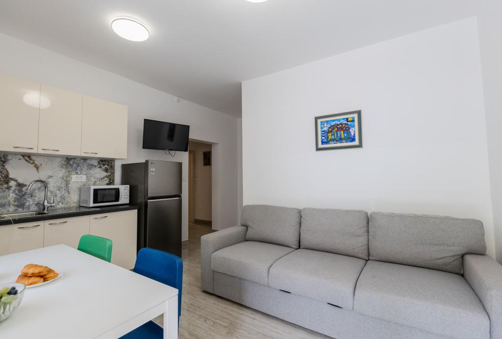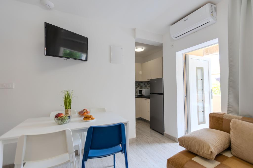 Ich wohnte in der Wohnung Nr. 5. Die Wohnung ist ausgezeichnet und die Gastgeber sind äußerst nett und zuvorkommend. Die Unterkunft war mehr als zufriedenstellend und bietet alles, was Sie für einen angenehmen Aufenthalt benötigen. Der Strand ist sehr nah und das hat uns sehr gut gefallen. Die Zimmer waren ordentlich und wirklich schön eingerichtet. Würde auf jeden Fall wieder hierher kommen!