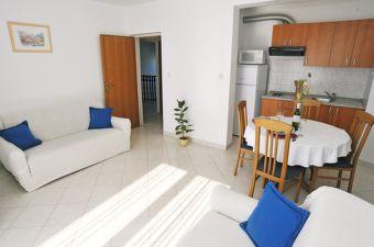 Modern ausgestattetes Haus mit 9 Wohneinheiten: 6 Apartments mit einem Schlafzimmer und einem Wohnzimmer mit zwei zusätzlichen Ausziehbetten, einem Zweisitzer und einem Dreisitzer, sowie einer ausgestatteten Küche, einem Badezimmer mit Dusche und einem großer Balkon mit Tisch und Stühlen. Im Flur befindet sich ein großer Kleiderschrank. 3 Studios sind für zwei Personen ausgelegt und komplett ausgestattet: Badezimmer mit Dusche, großer Kleiderschrank, Küche und ein kleinerer Balkon mit Tisch und Stühlen. Alle Wohnungen verfügen über eine Klimaanlage. Das Haus liegt 3 Gehminuten vom Meer oder 5 Gehminuten vom großen Sandstrand (Kraljičina plaža) entfernt.