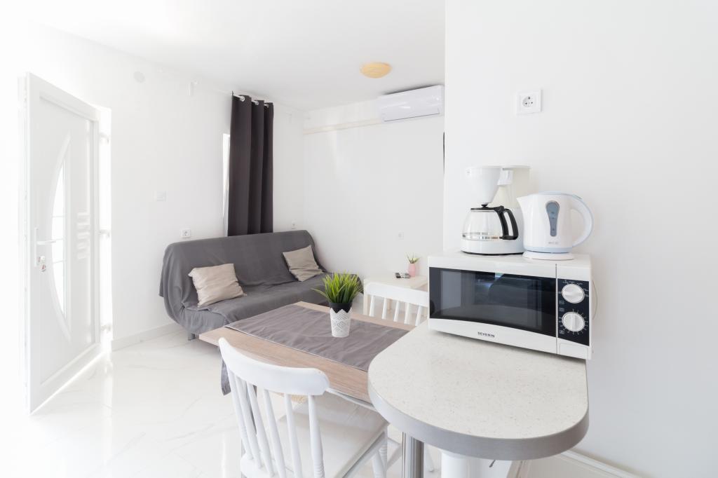 Casa Tea liegt im Herzen des malerischen Privlaka, genauer gesagt in der kleinen Stadt Sabunike, die für ihr klares Meer und zahlreiche flache Buchten bekannt ist, weshalb Familien mit kleinen Kindern diesen Ort gerne für ihren Urlaub wählen. Eine besondere Attraktion ist ein langer Sandstrand mit einer Heilschlammquelle. Die möblierte Wohnung bietet ihren Gästen alles, was sie für einen entspannten und aktiven Urlaub brauchen, und alles, was sie brauchen könnten, befindet sich in unmittelbarer Nähe – ein Markt, eine Bäckerei, ein Obstbauer, Restaurants und Cafés. Wenn Gäste sich im Windsurfen versuchen möchten, können sie die Segelschule im schönen Nin besuchen, die nur wenige Autominuten von der Wohnung entfernt ist, und in zehn Autominuten erreichen Sie Zadar für einen Abendspaziergang. Die gesamte Wohnung ist klimatisiert und verfügt über ein ausgezeichnetes WLAN-Netzwerk und besteht aus zwei Schlafzimmern, einem Wohnzimmer mit einem Schlafsofa für zwei Personen, einem offenen Esszimmer, einem Badezimmer und einer voll ausgestatteten Küche. Es bietet Platz für bis zu sechs Personen und die Gäste müssen sich keine Sorgen um das Parken machen. Der Lieblingsplatz der Gäste wird die Terrasse sein, auf der sich ein großer Tisch mit Stühlen, Liegestühlen und bequemen Gartenmöbeln für morgendliche Treffen beim Kaffee oder zum Ausruhen mit einem Buch befindet. Ihnen steht auch ein Grill zur Verfügung – eine perfekte Gelegenheit für angenehmes Beisammensein an der frischen Luft. Es besteht die Möglichkeit, einen Ausflug zu einem der attraktiven Orte in der Nähe oder eine Bootsfahrt auf dem kristallklaren Meer zu arrangieren. Casa Tea enthält alles, was den Gästen ein einzigartiges Urlaubserlebnis beschert.