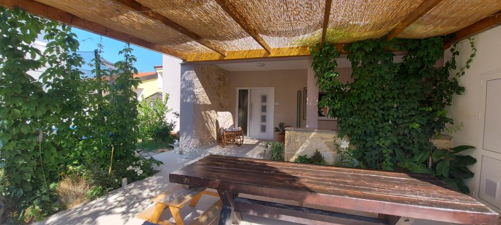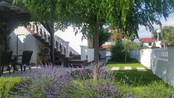 Apartment mit angelegtem Garten und ruhiger Umgebung. Bis zum Dorfzentrum sind es 50 m und bis zum Strand 300 m. Die Wohnung ist mit bequemen Betten, einem neu renovierten Badezimmer, Sat-TV, WLAN und Klimaanlage ausgestattet. Zur Wohnung gehört eine Terrasse mit Sonnenschirm. Im Hof steht Ihnen außerdem ein Pavillon mit Grill zur Verfügung.