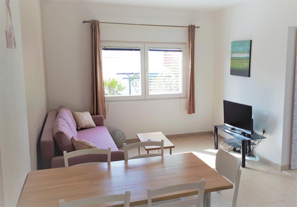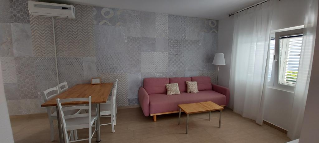 Unterkunft war in einer angenehmen Wohnung im Erdgeschoss mit Terrasse. Ausstattung der Küche völlig ausreichend ... more deluxe. 1 Doppelbett (in einem Schlafzimmer mit einem großen Kleiderschrank) + ein weiteres Bett (in den Hauptraum mit Küche. Area). Fotos von der Wohnung der Realität entsprechen. Funktionierende WiFi. Für TV-Signal ausfällt, aber wir gaben ihr sowieso verlassen, damit ich nicht sehen Sie alle störte uns. Terrasse mit einem großen Tisch und Stühlen. 50 Meter von der Wohnung ist ein paar Geschäfte mit Gebäck, Obst und Gemüse, Eis und einen Minimarkt. An die Stelle der přebívají eher Kroaten so gibt es Ruhe. Das Meer ist etwa 250 m entfernt die Treppe hinunter zum Pier oder sehr schmalen Strand. Die große weite Strand ist etwa 750 Meter in Richtung Nin ... so mit kleineren Kindern, um mit einem Kinderwagen zu gehen oder ein Auto fahren und zu 30 Kn für das Parken bezahlen. Wir haben eine andere Variante gewählt: Wir fuhren das Auto auf der Hauptstraße in Richtung Vir und nach 500 m oder 1 km auf einem Feldweg nach rechts gedreht, und wir waren sehr schön (wenn auch nicht verwaltete) Sandstrände, wo es nur wenige Menschen. Ideal für Kinder. Sogar 50 Meter vom Strand entfernt, ist das Wasser Hüfttief. Auch sehr schöner Ort zum Windsurfen. Wenn es weht von Velebit und somit können Sie auf ein Trio Segel fahren. Sehr schöner Ort für Familien mit Kindern und wo sein Vater kann zu surfen oder Drachen kommen. Unterkunft und die Lage auf jeden Fall empfehlen. Übertragung ohne Probleme und die junge Dame ist sehr freundlich.