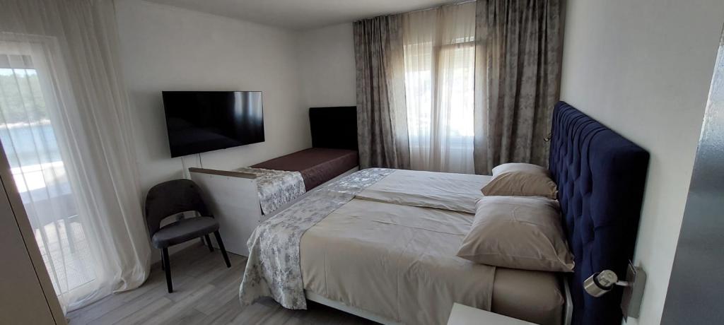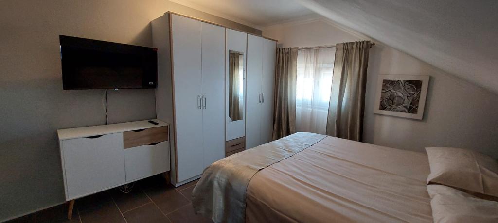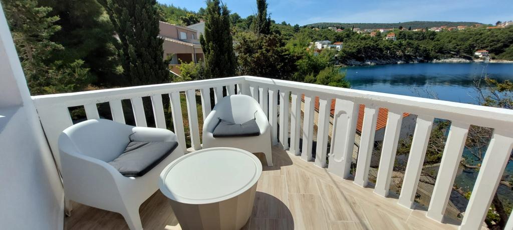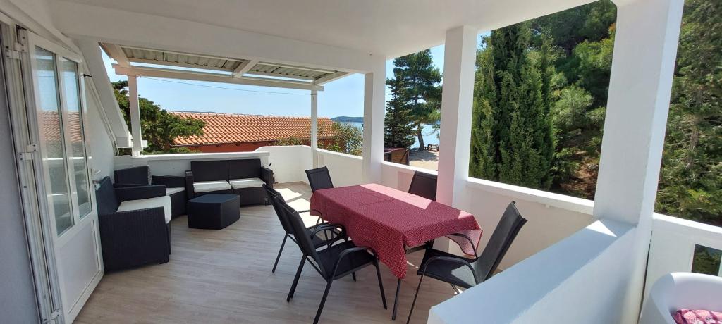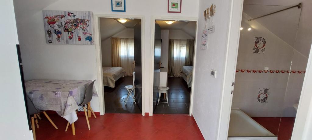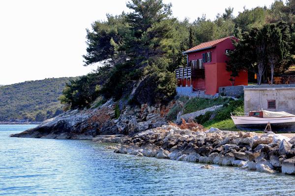 Die Apartments Kolić in Savar auf Dugi otok liegen in unmittelbarer Nähe des Meeres. Savar ist ein idealer Ort für einen erholsamen Urlaub mit Familie oder Freunden. Wir bieten Unterkunft in insgesamt 3 Apartments mit Terrasse und wunderschönem Blick auf das Meer. In einem separaten roten Haus befindet sich ein Studio-Apartment für 2 Personen, ausgestattet für einen angenehmen Aufenthalt. Die anderen 2 Wohnungen befinden sich im weißen Haus nebenan. Eines im ersten Stock und das andere im Dachgeschoss. Beide Wohnungen verfügen über zwei Schlafzimmer, eine Küche mit Esszimmer und ein Badezimmer. Jede Wohnung im Weißen Haus bietet bequem Platz für 4 bis 5 Personen, bei Bedarf können wir auch 6 Personen unterbringen. Das Besondere an unseren Apartments ist, dass sie direkt am Meer liegen und der Strand direkt vor dem Haus liegt! Der Hof erstreckt sich über 1000 m2 und ist von Pinien umgeben, die uns satten Schatten spenden. An heißen Sommertagen ruhen unsere Gäste auf einer Hängematte zwischen zwei Pinien, können sich aber auch auf den Liegestühlen am Meer oder im Schatten der Pinien vergnügen.