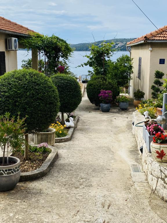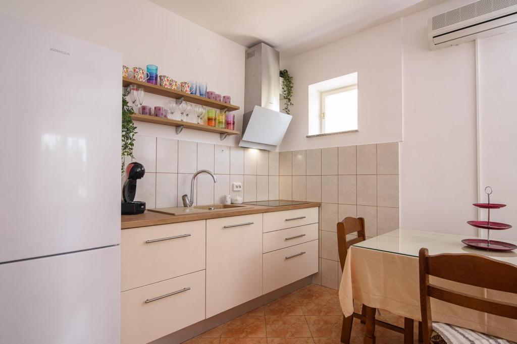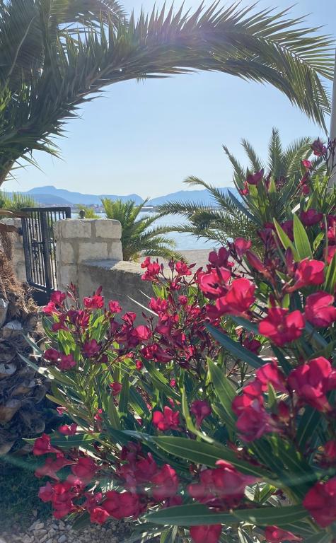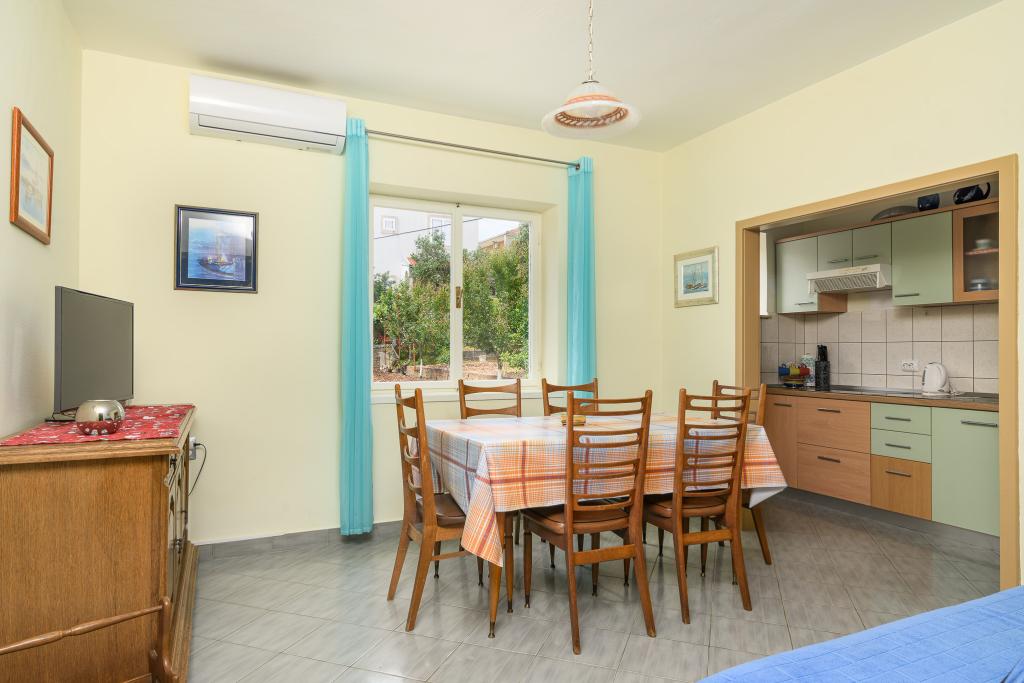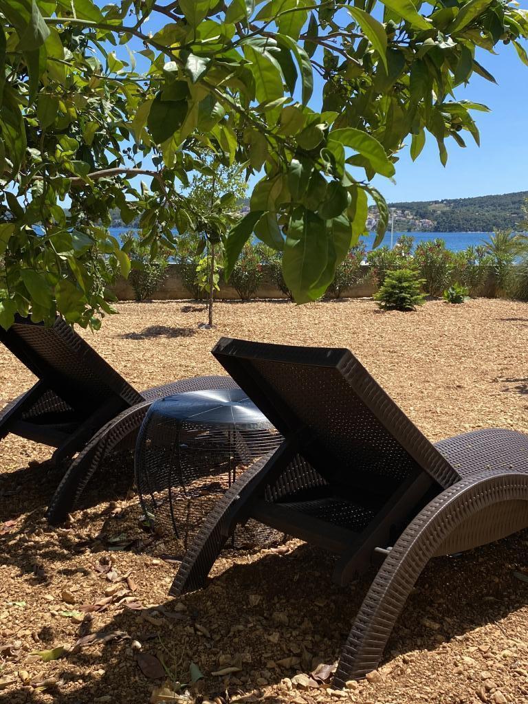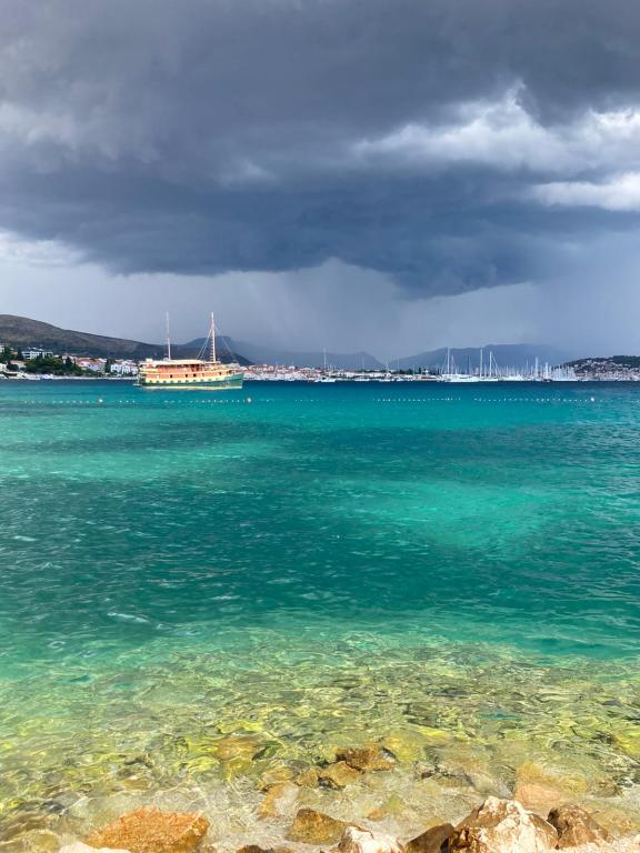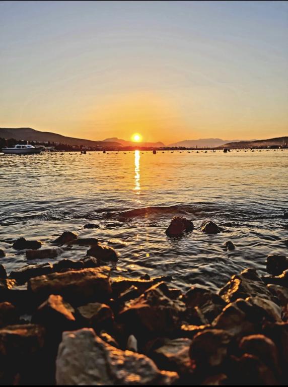 Voll ausgestattete Wohnung in ruhiger Lage. Liegt in erster Reihe zum Meer, 10 m zum Strand. Die Wohnung liegt 20 Gehminuten vom Zentrum und 40 Gehminuten von der Stadt Trogir entfernt. In der Nähe gibt es ein Restaurant und eine Kaffeebar.