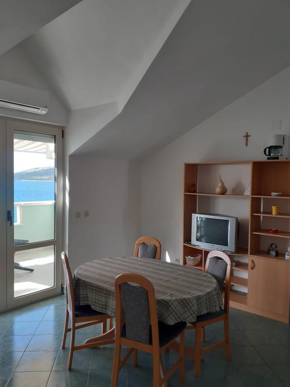 Die Wohnungen liegen direkt am Meer in einem kleinen Fischerdorf. Eine ideale Wahl für einen ruhigen Familienurlaub. Der Strand liegt direkt vor der Wohnung und alle Wohnungen verfügen über eine großzügige Terrasse mit freiem Blick auf das Meer. Die Abendstunden können Sie mit einem Spaziergang durch die schöne Stadt Trogir verbringen, die in der Nähe liegt.