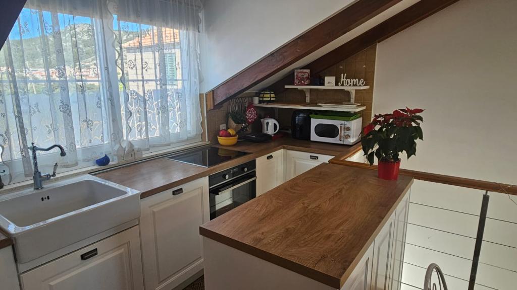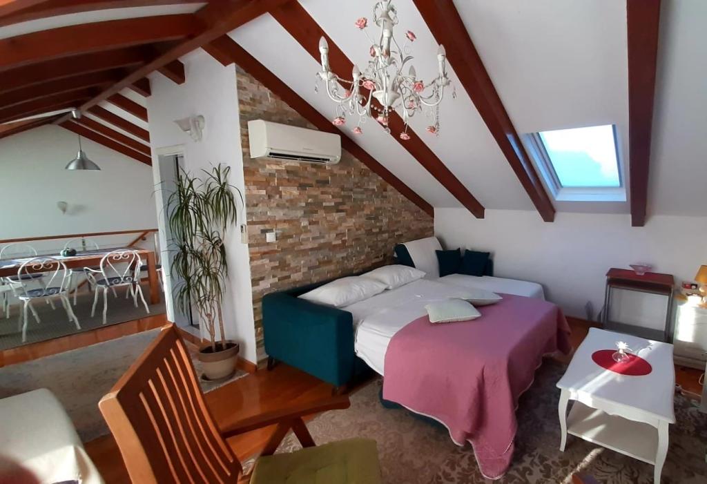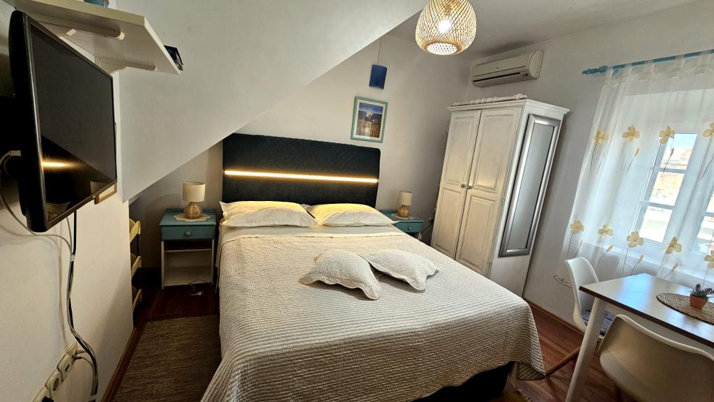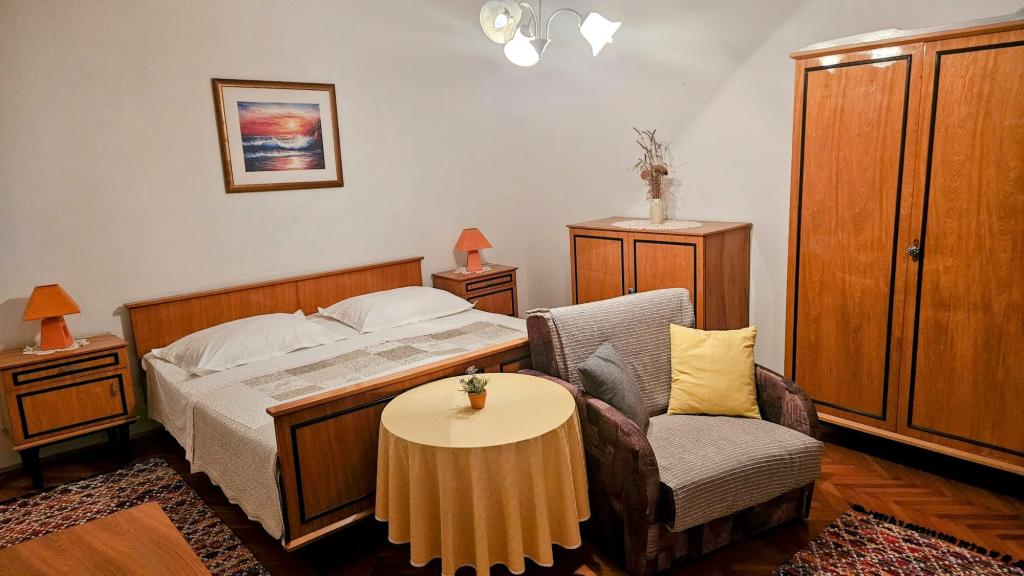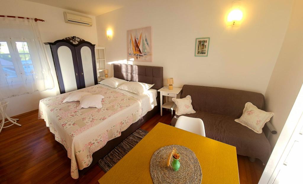 Apartments "Viktorija" befinden sich im kleinen Dorf Seget Vranjica, 6 km von Trogir - UNESCO-geschützten Stadt, 9 km vom Flughafen Split, 30 km von Split entfernt. Apartments "Viktorija" Studiia zählen 2 Suiten und 1 Apartment (4 1): Studio für 2 Personen - 22 m2 Balkon 5 m2, im ersten Stock, Küche gelegen, Wohn- und Schlafzimmer sind in einem Raum befindet, WC mit Dusche, Sat-TV, Klimaanlage, kostenlosem WLAN. Studio (2 1) - 25 m2 und Balkon 5 m2, im ersten Stock, Küche, Wohnzimmer und Schlafzimmer (Couch und Doppelbett) sind in einem Raum, Bad mit Dusche, Sat-TV, Klimaanlage, Wi-Fi befindet Apartment (4 1) - 50 m2 Balkon 10 m2, im ersten Stock, Küche, Esszimmer, 2 Schlafzimmer, Bad mit Dusche, Sat-TV, Klimakostenfreiem WLAN befindet Alle Apartments sind komplett ausgestattet mit Küche, Geschirr, Decken und Handtüchern ausgestattet. Endreinigung im Preis inbegriffen.