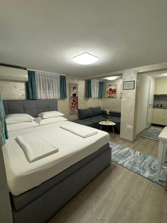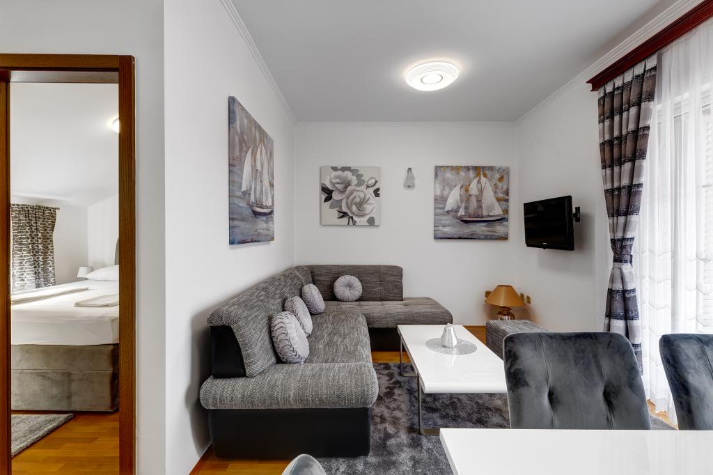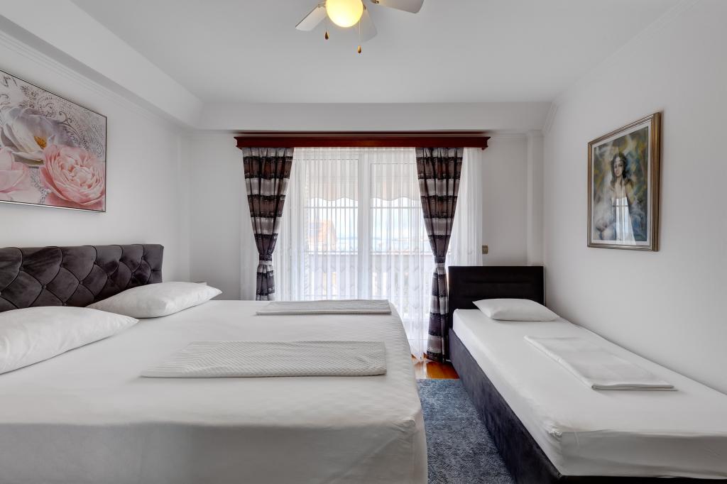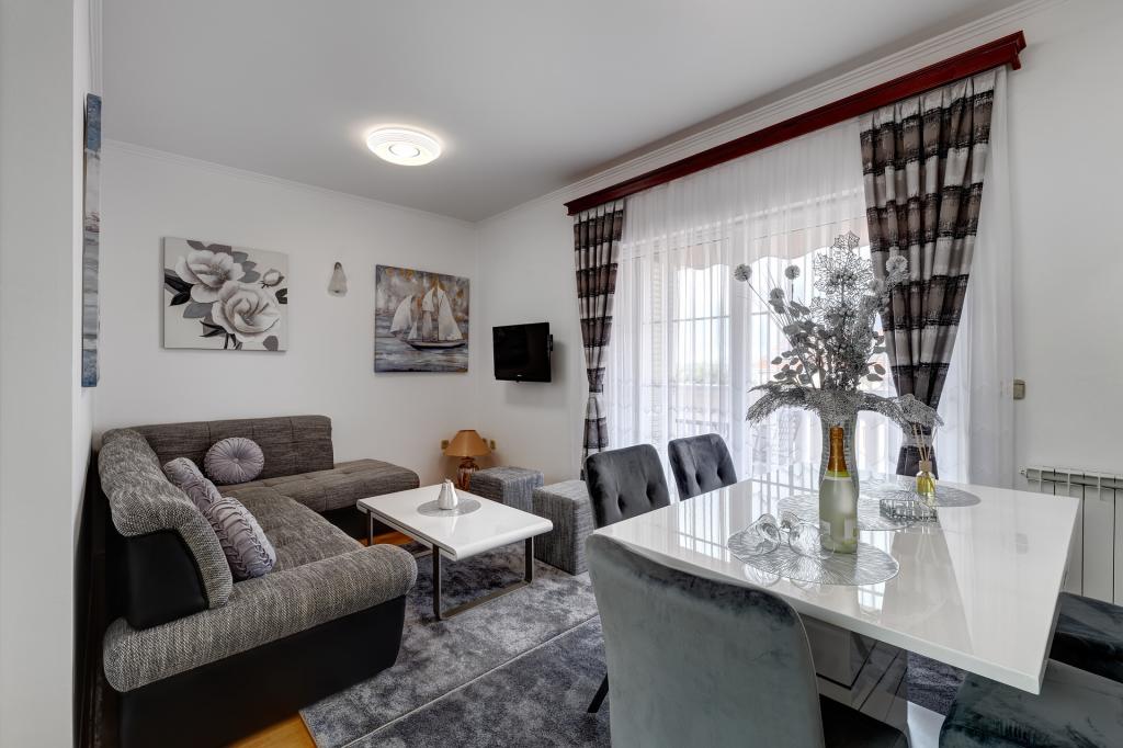 Die Račić Apartments befinden sich in Selce, Maršala Tita 135, weniger als 100 Meter vom Meer und Strand entfernt. Die Strände sind wunderschön gestaltet und bieten Restaurants, Cafés sowie Liegestuhl- und Sonnenschirmverleih. Sie haben die Wahl zwischen Kies-, Beton- und Sandstränden. Die Apartments sind, wie das Haus selbst, luxuriös ausgestattet und eingerichtet und stets sauber. Der Garten des Hauses ist mit mediterranen Pflanzen bepflanzt. Hinter dem Haus befindet sich ein Grill, der den Gästen jederzeit zur Verfügung steht. Im Garten des Hauses befinden sich sichere Parkplätze für die Gäste. Jedes Apartment verfügt über eine Terrasse mit Meer- und Inselblick, eine Klimaanlage (die beim Verlassen des Apartments in Richtung Stadt oder Strand ausgeschaltet werden muss) und eine Markise (die bei Abwesenheit und bei schlechtem Wetter geschlossen werden muss). Bitte beachten Sie die stets aktuelle Verfügbarkeit und die Preisliste. Die einmalige Reinigungsgebühr für das Apartment beträgt 60,00 Euro und ist nicht im Preis inbegriffen.