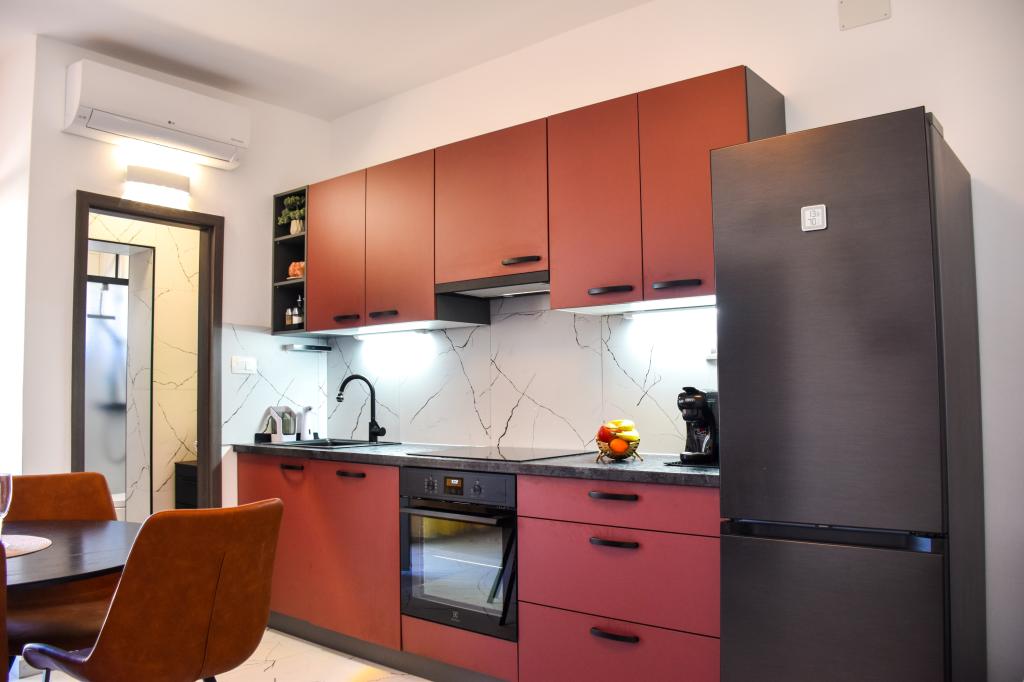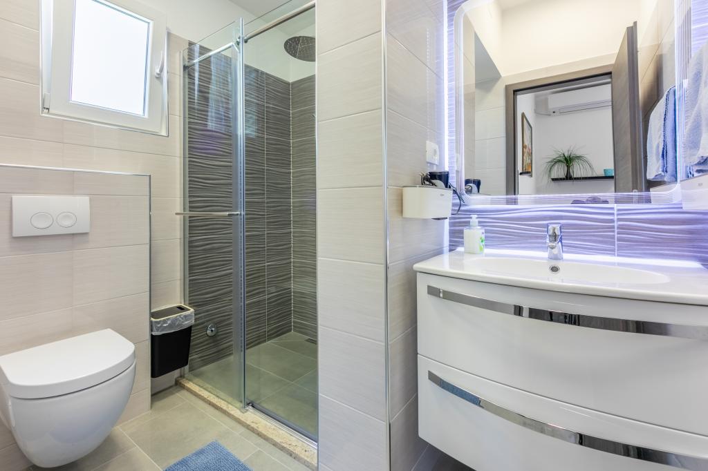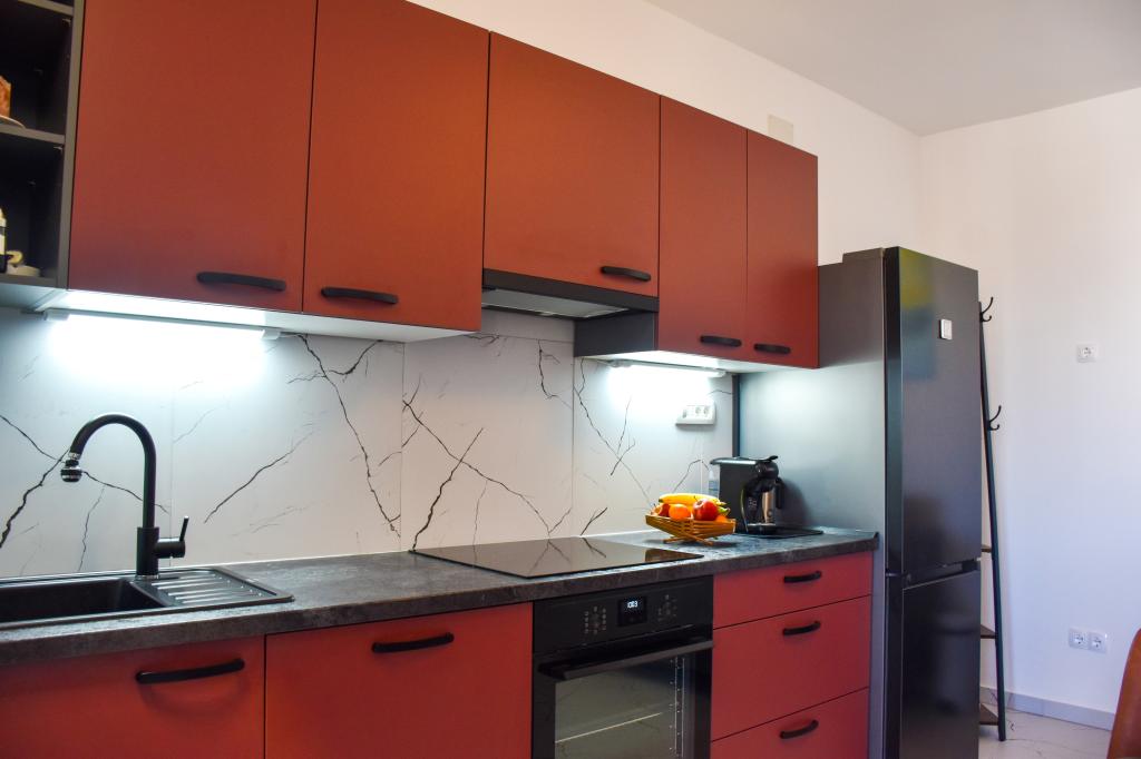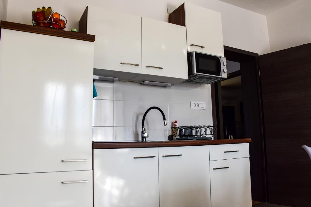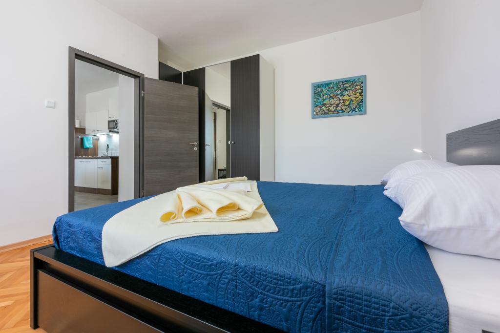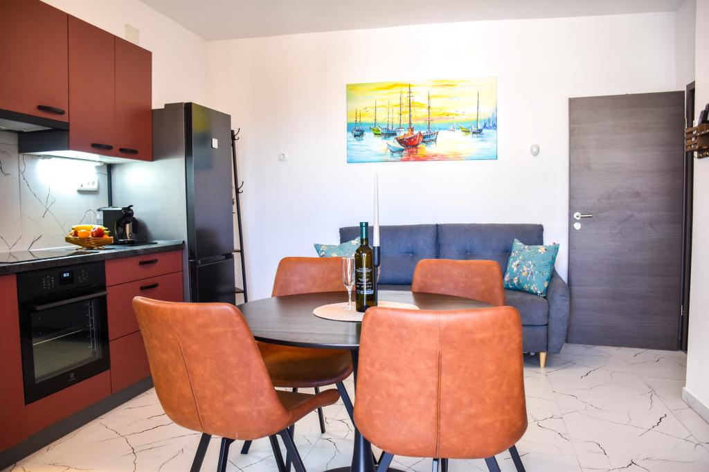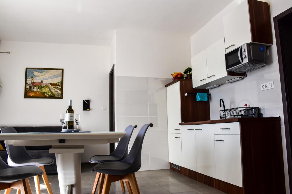 Die Apartments befinden sich in einem Einfamilienhaus, nur wenige Gehminuten vom Meer und der Promenade mit zahlreichen Restaurants, Cafés, Sportmöglichkeiten und Geschäften entfernt. Die Wohnung „Ema“ (2+2) besteht aus einem Doppelzimmer, einer Küche mit Esszimmer, in der sich ein Doppelschlafsofa befindet, das zu einem Doppelbett ausgeklappt werden kann, einem Badezimmer und einer geräumigen Terrasse mit Grill. Die zweite Wohnung „Gita“ (2+1) verfügt über ein Schlafzimmer mit Doppelbett, eine geräumige Küche mit Esszimmer mit Schlafsofa, ein Badezimmer und eine großzügige Terrasse.