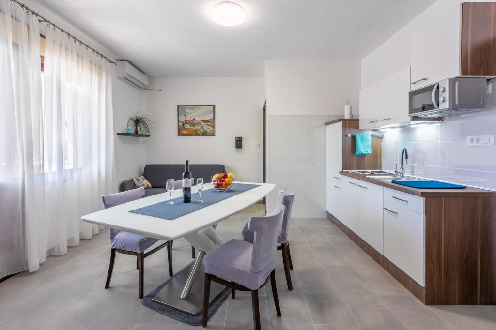 Apartment 2+2 erfüllt in jeder Hinsicht den Urlaub für eine vierköpfige Familie. Schön eingerichtete Wohnung, hat alles, was Sie brauchen, um sich wie zu Hause zu fühlen. Kleine Dinge bedeuten viel. Eine schöne Überraschung zu Ostern hat die Kinder glücklich gemacht. Vielen Dank ! Die Gastgeber sind nett und unaufdringlich. Die Nähe zum Strand, zur Promenade und zum Zentrum ist in wenigen Minuten bequem zu Fuß erreichbar und reicht doch aus, um seine Ruhe zu haben.