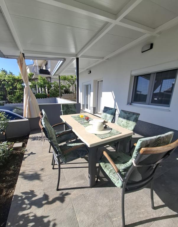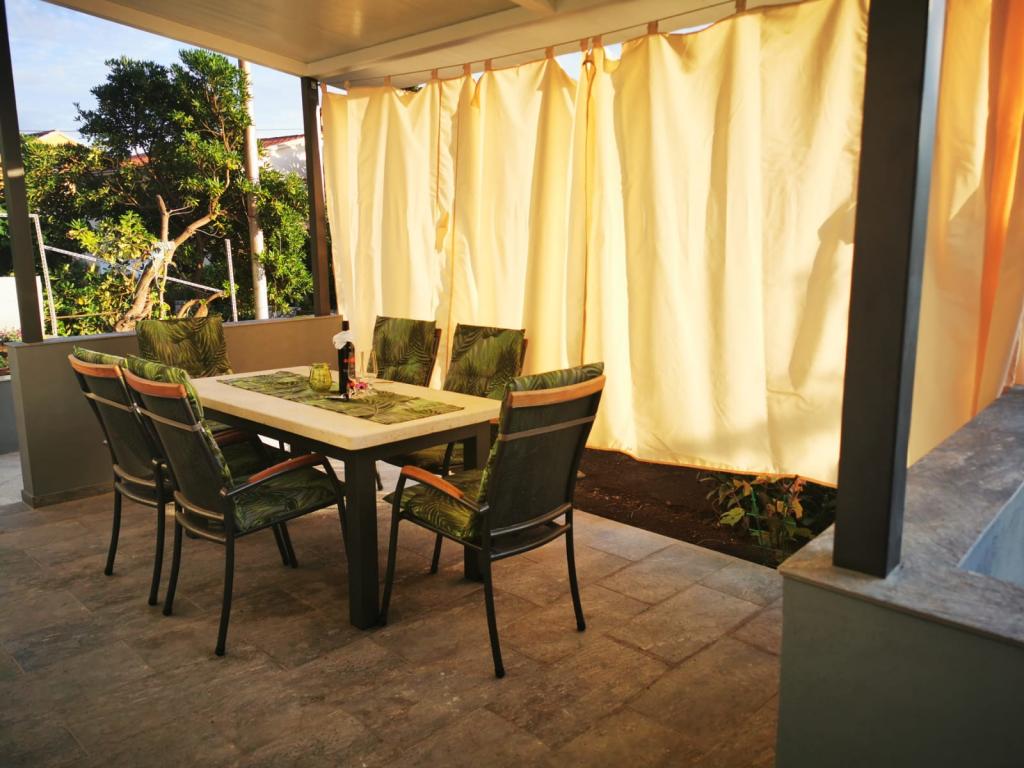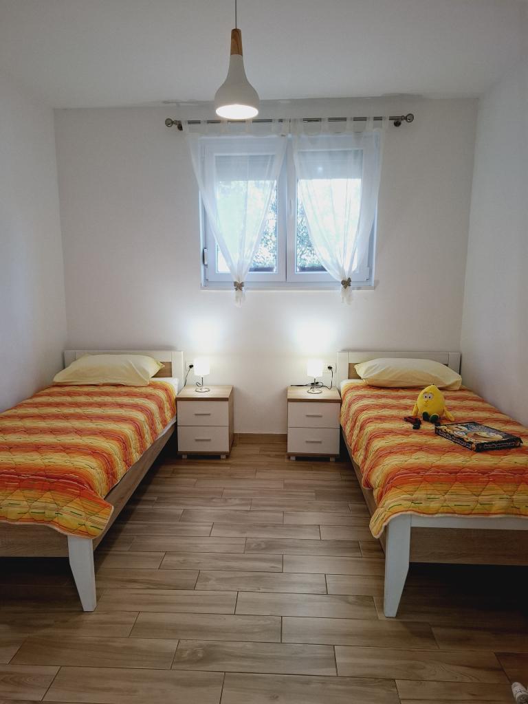 Apartment 1 befindet sich im Erdgeschoss eines Einfamilienhauses mit großer privater Terrasse und teilweisem Meerblick. Voll ausgestattet, Klimaanlage, Internet, Parkplatz. Es liegt ca. 300 m vom Meer, Strand und dem Stadtzentrum entfernt. Es besteht aus zwei Doppelzimmern (eines mit Doppelbett, eines mit zwei Einzelbetten), einem Wohnzimmer, einer ausgestatteten Küche mit Esszimmer (Geschirrspüler), einem Badezimmer (Waschmaschine) und einer separaten Toilette. Im Hof des Hauses steht ein Parkplatz für 1 Auto zur Verfügung. Das Studio-Apartment befindet sich im Erdgeschoss (Hochparterre) des Einfamilienhauses. Es verfügt über eine Küche, ein Doppelbett 160x200 cm, ein Badezimmer, Klimaanlage und eine kleine Terrasse vor dem Studio. Gemeinsame Nutzung des Grills. Apartment Lea befindet sich im 2. Stock. Es verfügt über 2 Schlafzimmer, eine ausgestattete Küche, ein Badezimmer (Waschmaschine), Klimaanlage, eine große Terrasse mit Meerblick. Im Hof des Hauses steht ein Parkplatz für 1 Auto zur Verfügung.