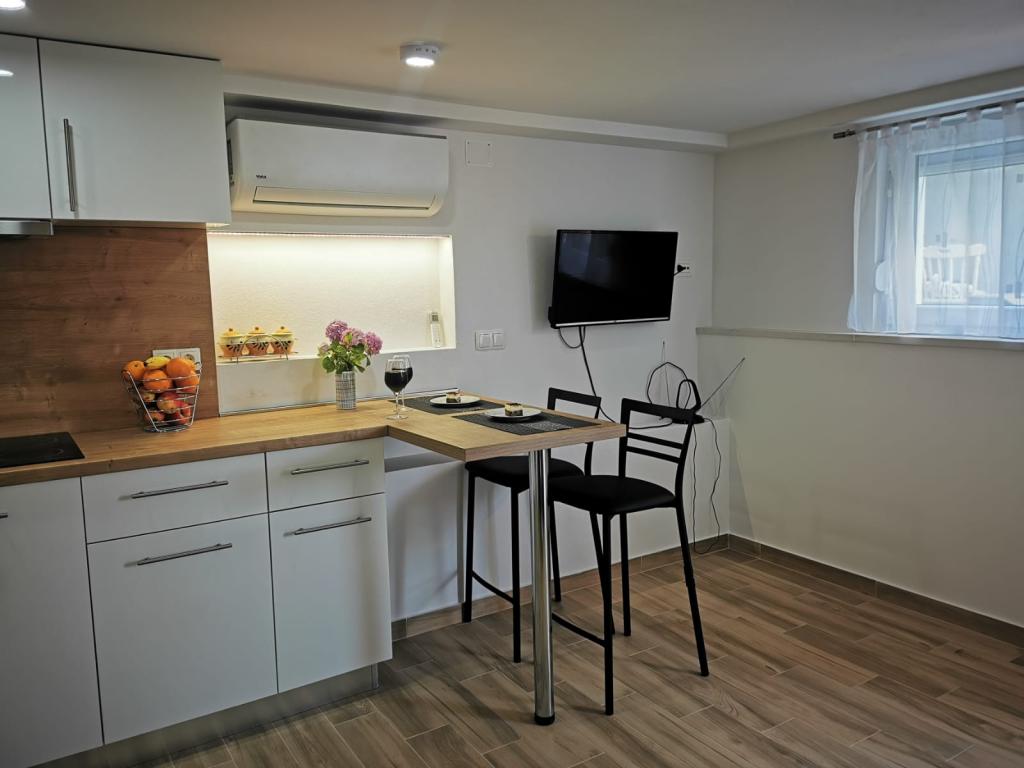 Sehr liebe und freundliche Gastgeber. Schönes neu renoviertes Studio-Apartment mit einer bezaubernden Terrasse mit Blick auf das Meer und den Strand in der Nähe. Es bietet alles, was Sie zum Aufladen Ihrer Batterien benötigen. Besonderer Dank geht an die Vermieterin Marina für ihre Freundlichkeit und Freundlichkeit. Zufriedene Slawonier